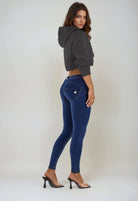 Spodnie WR.UP® w kolorze niebieskim łączą ikoniczny styl Freddy z wyjątkowym komfortem. Mają wygodny średni stan, który zapewnia codzienną wygodę. Do tego dochodzi ponadczasowa długość pełna, idealna na każdą porę roku. Całość dopełnia smukły, obcisły krój, który podkreśla Twoje kształty. Wykonane z połączenia ponadczasowej estetyki denimu z ulepszonym komfortem i elastycznością. Jako część linii WR.UP® posiadają opatentowaną technologię zaprojektowaną, aby naturalnie podkreślać i modelować sylwetkę. Idealne na niezliczone okazje, od casualowych po eleganckie.
