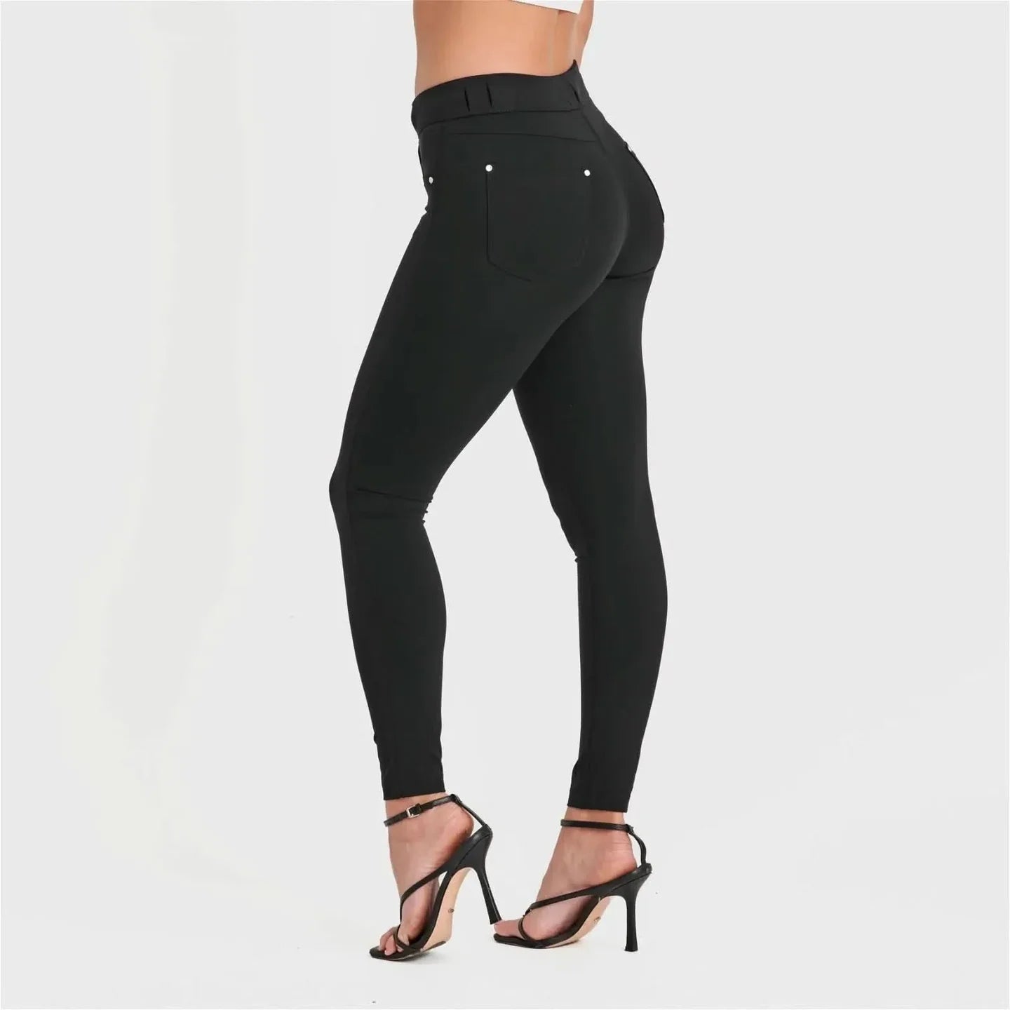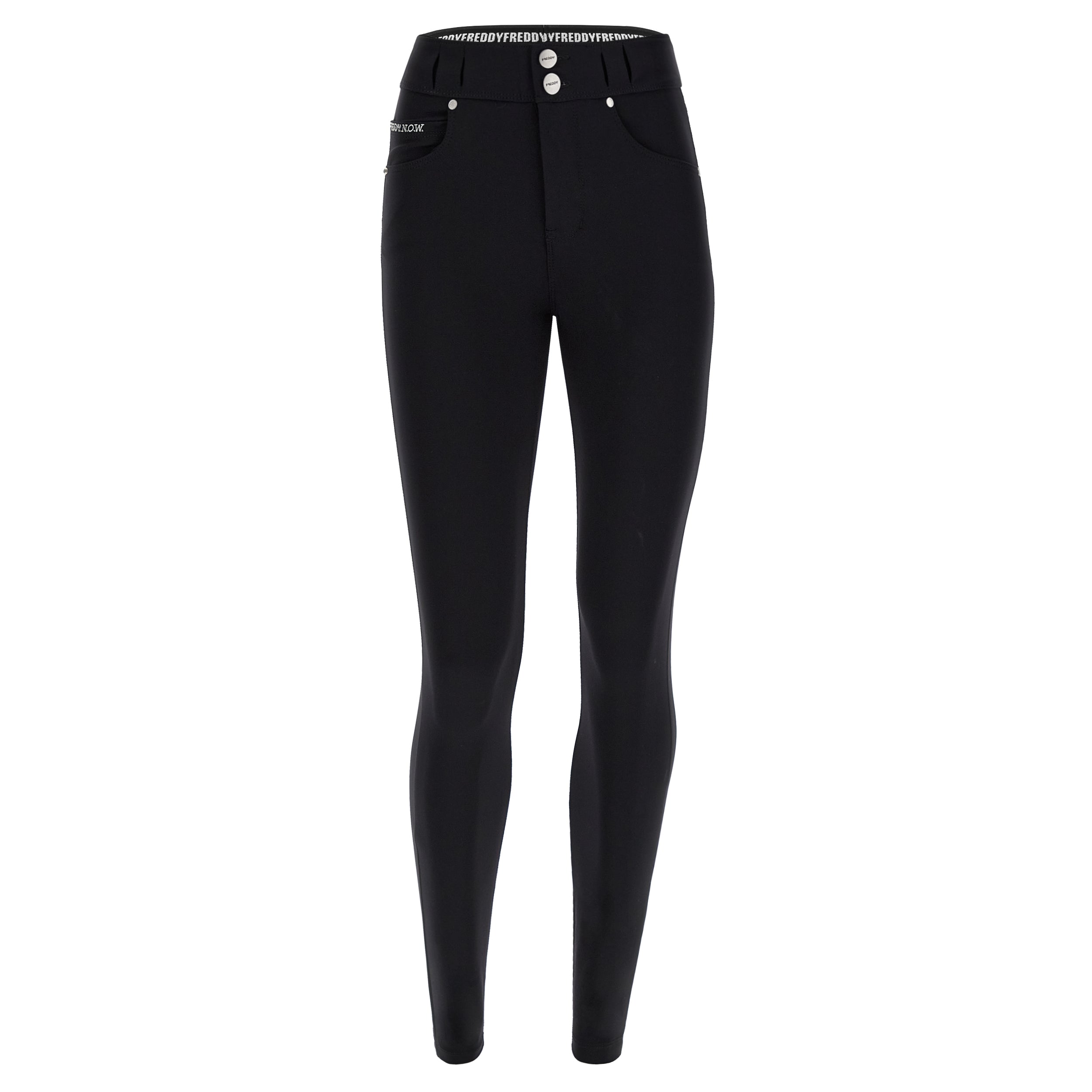 N.O.W.® D.I.W.O.® Pro redefines comfort without compromise. This true-to-size, high-waisted full length pant features our proprietary Emana® fabric—engineered with bioactive minerals that work with friction and UV rays to visibly reduce cellulite appearance and enhance skin firmness. The sleek silhouette mimics a traditional skinny leg trouser while delivering exceptional wearability. Real buttons, hidden belt loops, and five functional pockets complete the refined design. Black. 59% Polyamide, 41% Elastane.