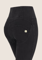 Freddy WR.UP® Curvy damskie jeansy push-up - wysoki stan skinny - czarne - czarne szwy