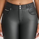 Poczuj wyjątkowe dopasowanie i komfort spodni NOW® w kolorze czarnym. Mają ponadczasową pełną długość, idealną na każdą porę roku. Dodatkowo wygodny średni stan zapewnia codzienną wygodę. Całość dopełnia smukły krój typu skinny, który podkreśla Twoje kształty. Wykonane z materiału imitującego skórę, łączącego styl i swobodę ruchów. Należące do kolekcji NOW®, te spodnie stawiają na najwyższy komfort i swobodę, poruszając się z Tobą bez wysiłku. Spodnie, które z łatwością łączą wygodę z modnym wyglądem.