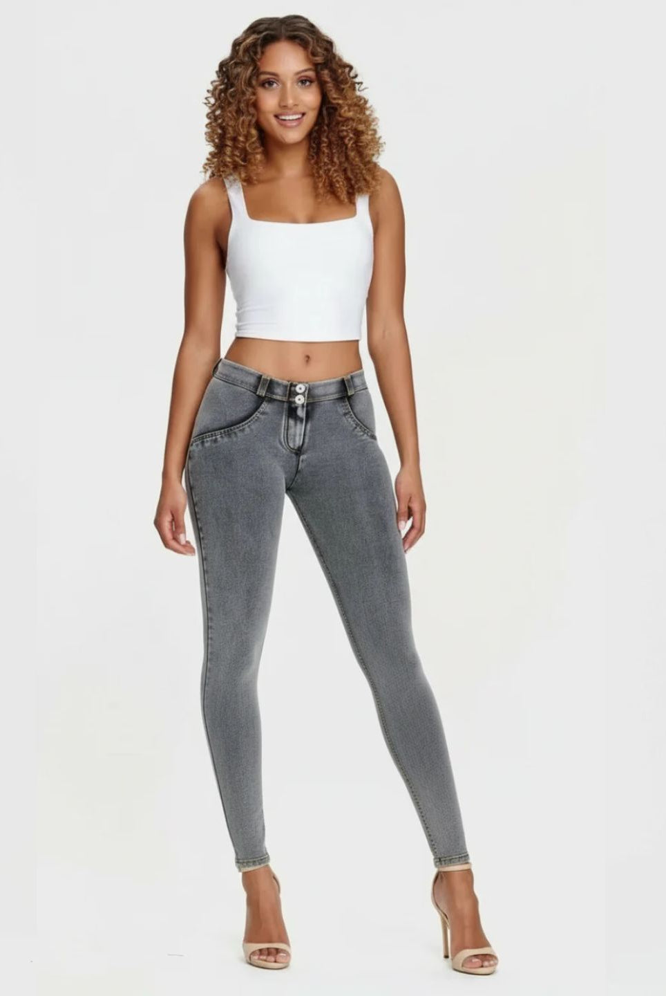 Hosen in Denim-Optik kombinieren den Stil von Jeans mit dem Komfort von Leggings. Unsere Denims sitzen wirklich wie eine zweite Haut und betonen dabei deine natürlichen Kurven. Obwohl diese Jeggings wie echte Jeans aussehen, sind sie extrem elastisch und genauso bequem wie deine Lieblingsleggings. Dank des Silikonbundes an der Taille rutscht die Hose nicht, und du brauchst keinen Gürtel. Eine Jeanshose ist eine echte Alleskönnerin, die du immer und überall tragen kannst. Wir bieten unsere Denims in zahlreichen Farben und mit unterschiedlichen Details, so dass du genau den perfekten Style für dich findest. Ob in voller Beinlänge oder Knöchellänge, mit hoher oder niedriger Leibhöhe, Freddys sitzen immer perfekt!