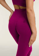 Feminine and modern in style, these regular leggings with flared bottoms are made from breathable jersey fabric for comfort and performance. The very high waist in seamless ribbed fabric gives support, while the heart-shaped seams at the back provide a shaping fit.