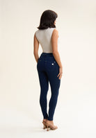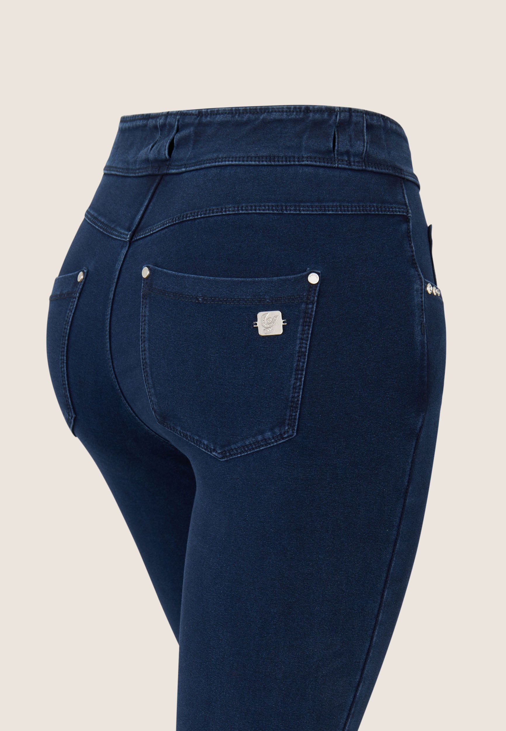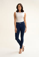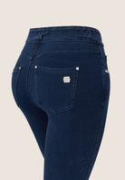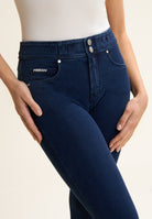 Freddy N.O.W.® Eco damskie spodnie komfortowe - średni stan, rurki - niebieskie - niebieskie szwy - J0B