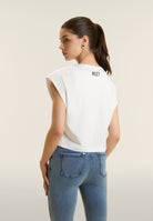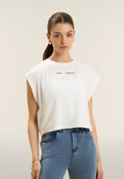 Short-sleeved t-shirt, cropped, with MST FREDDY prints - Optical White