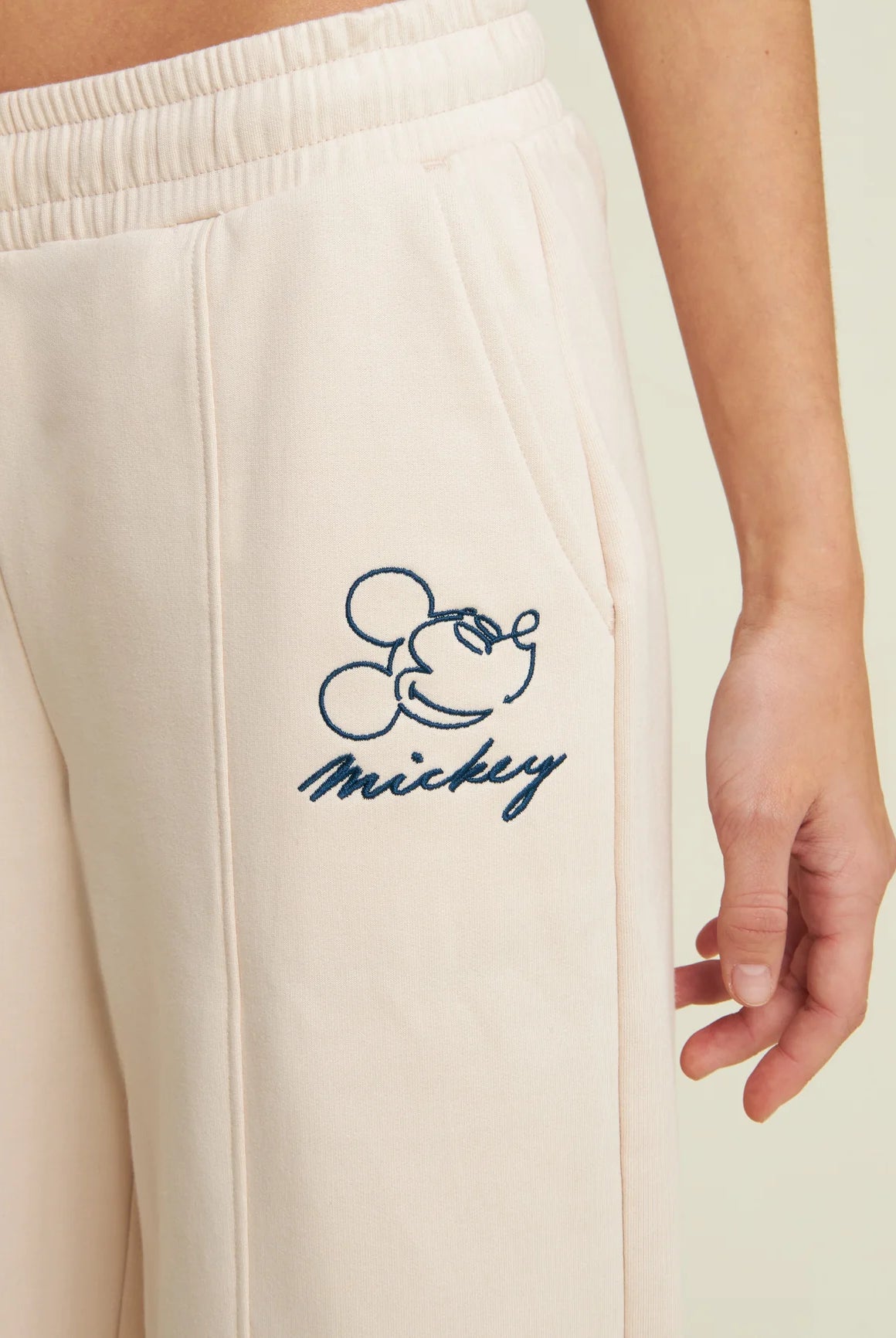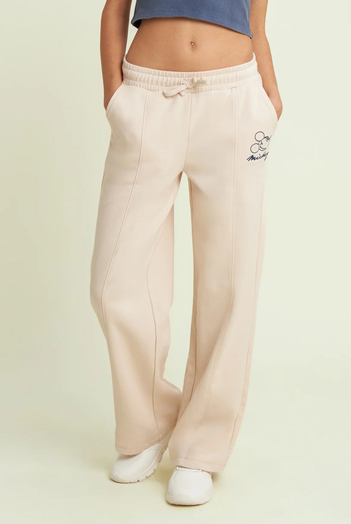 Women's wide leg trousers with Mickey Mouse embroidery