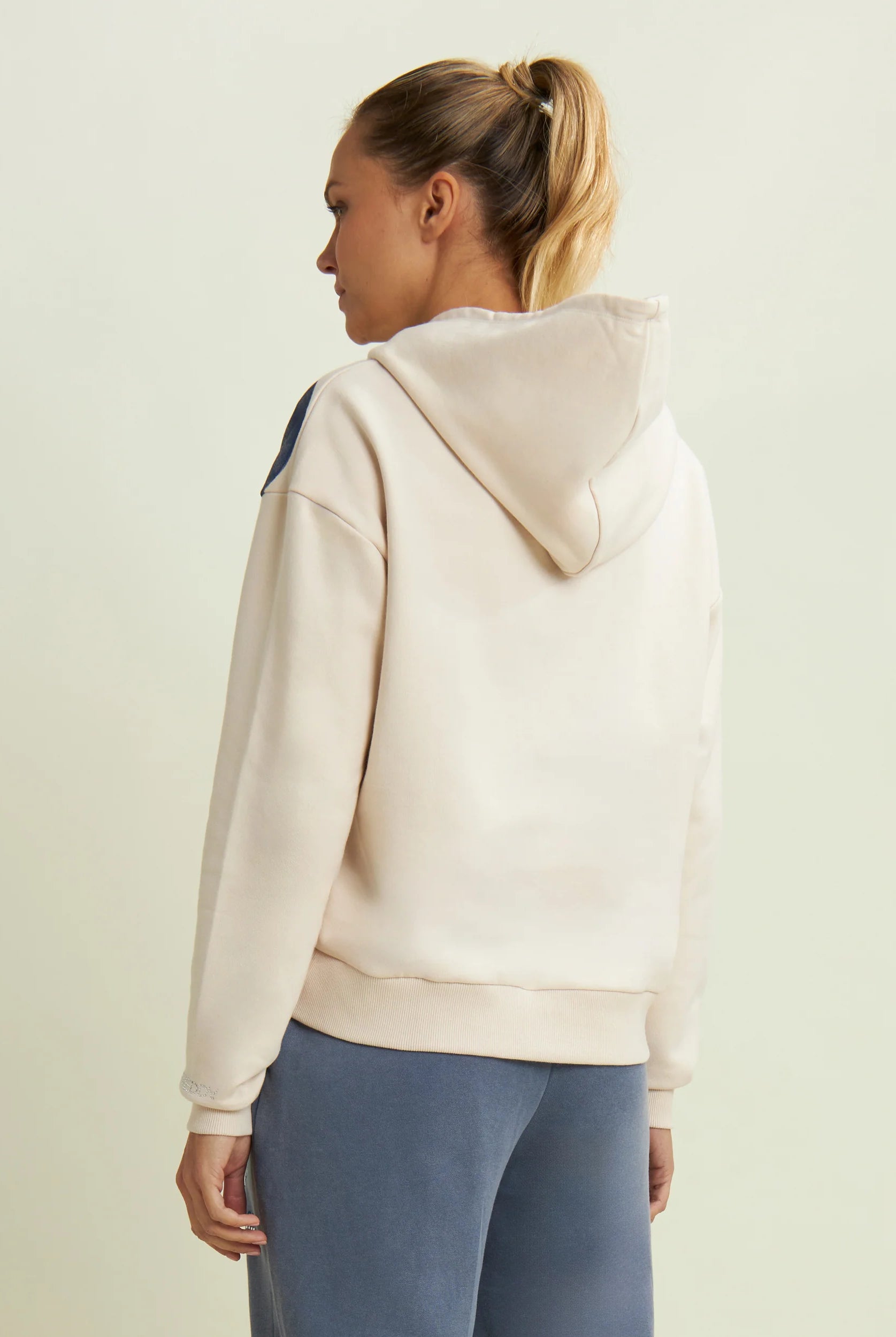 Two-tone cropped sweatshirt with half-zip and turtleneck
