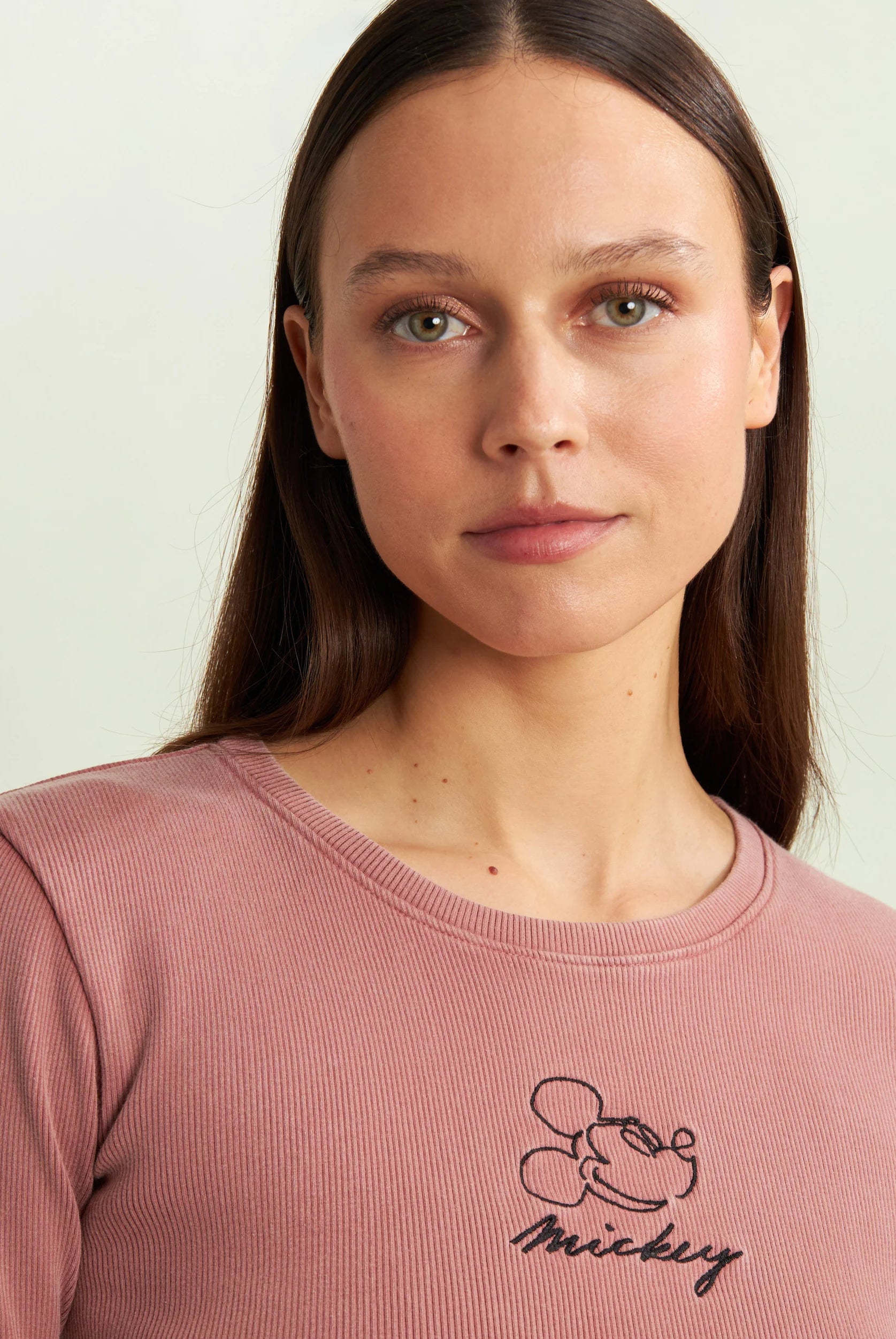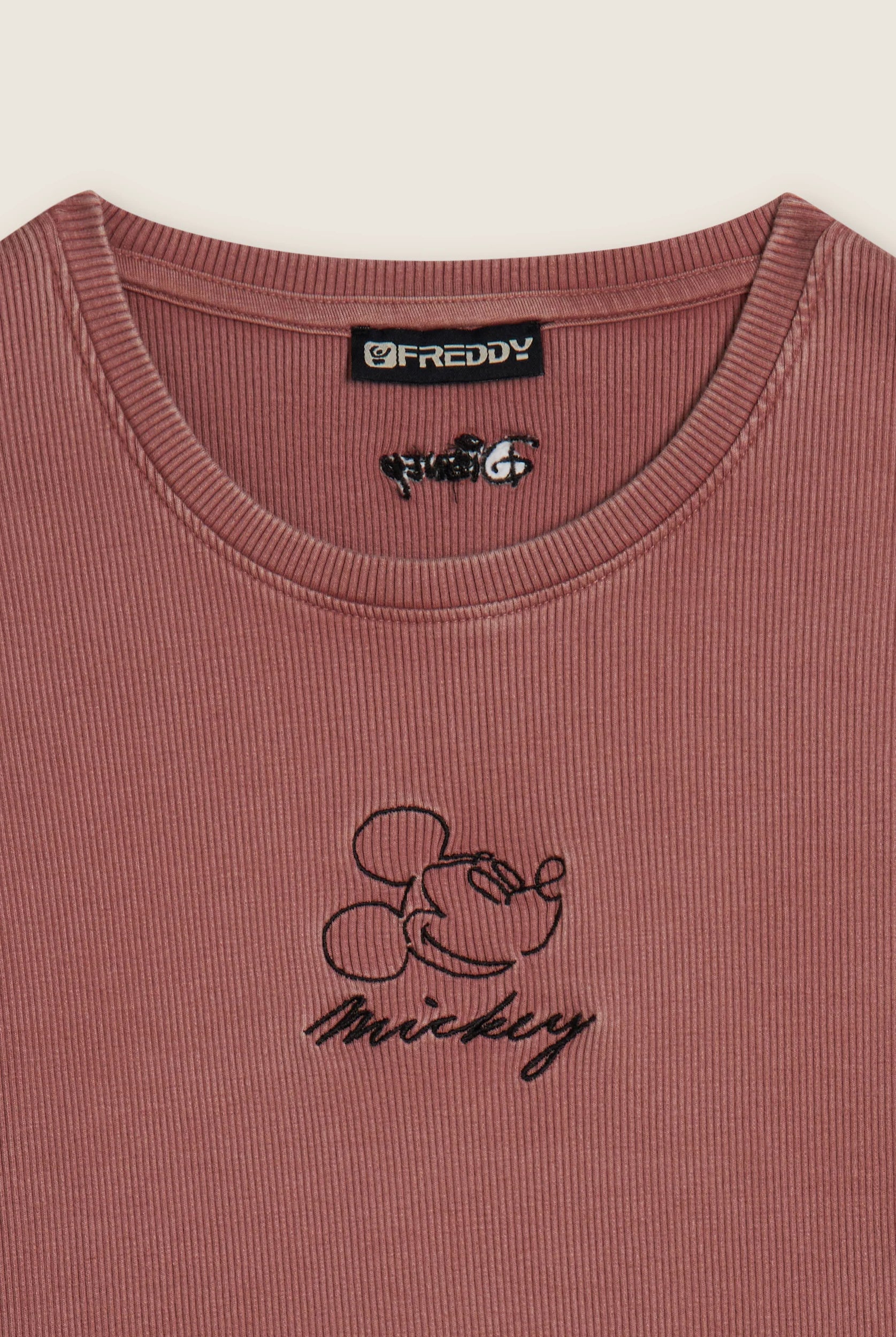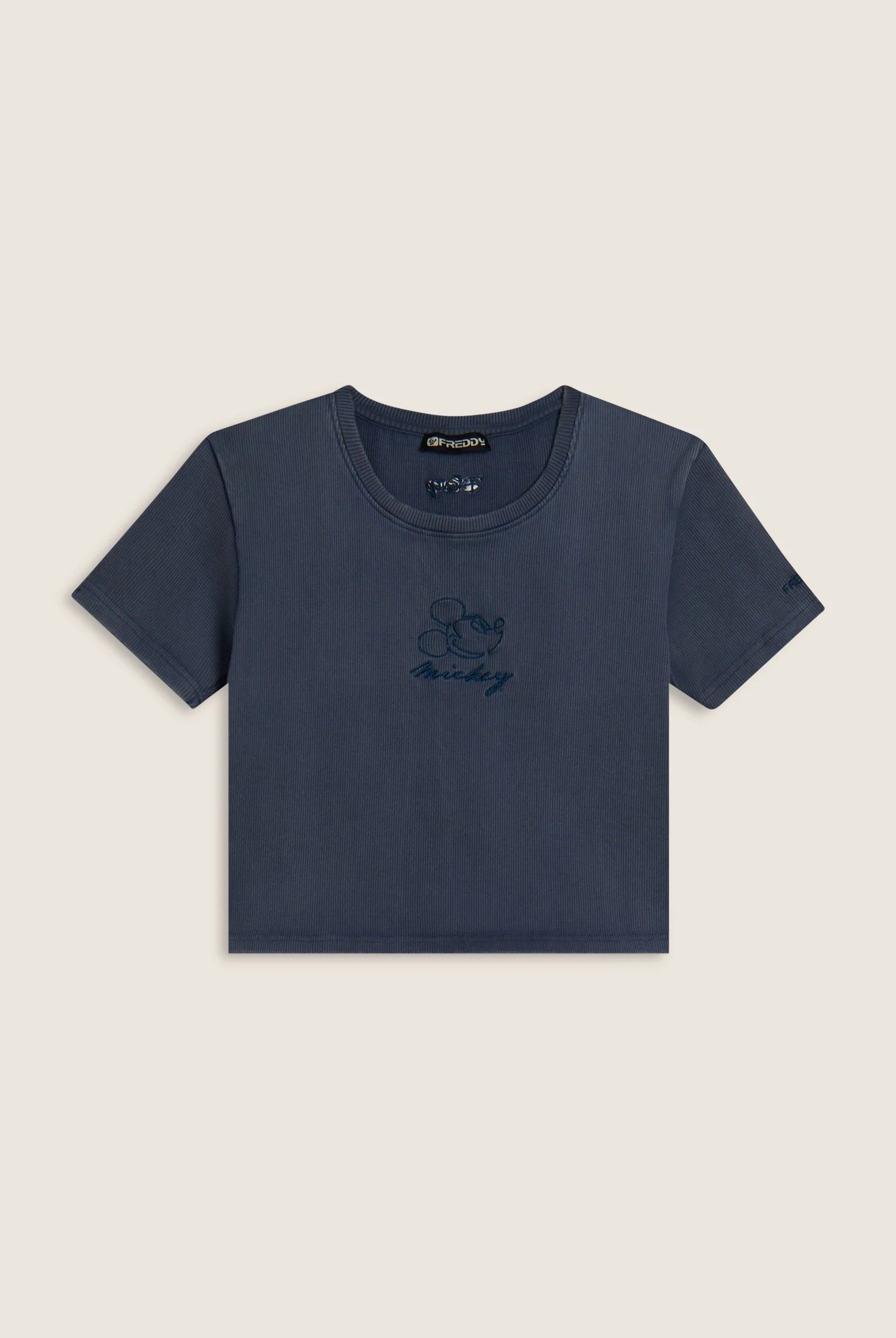 Women's ribbed cropped T-shirt with Disney embroidery