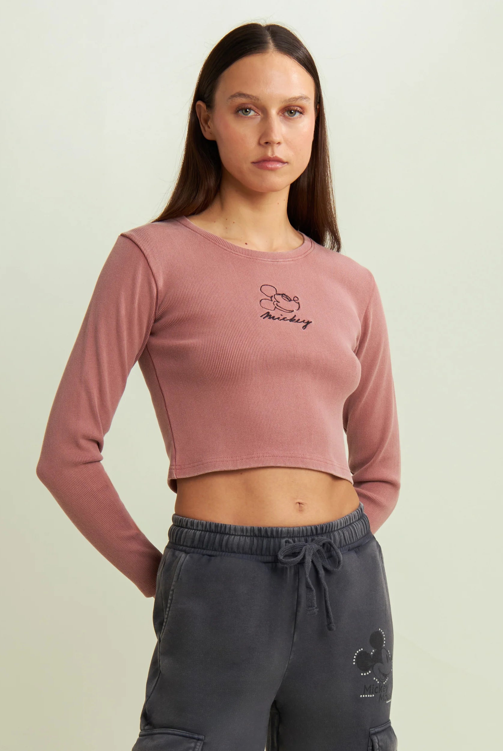 Women's long-sleeved cropped T-shirt with Disney embroidery