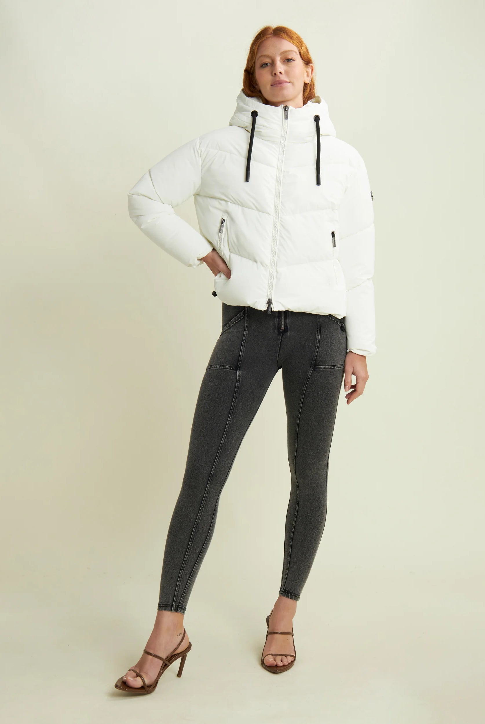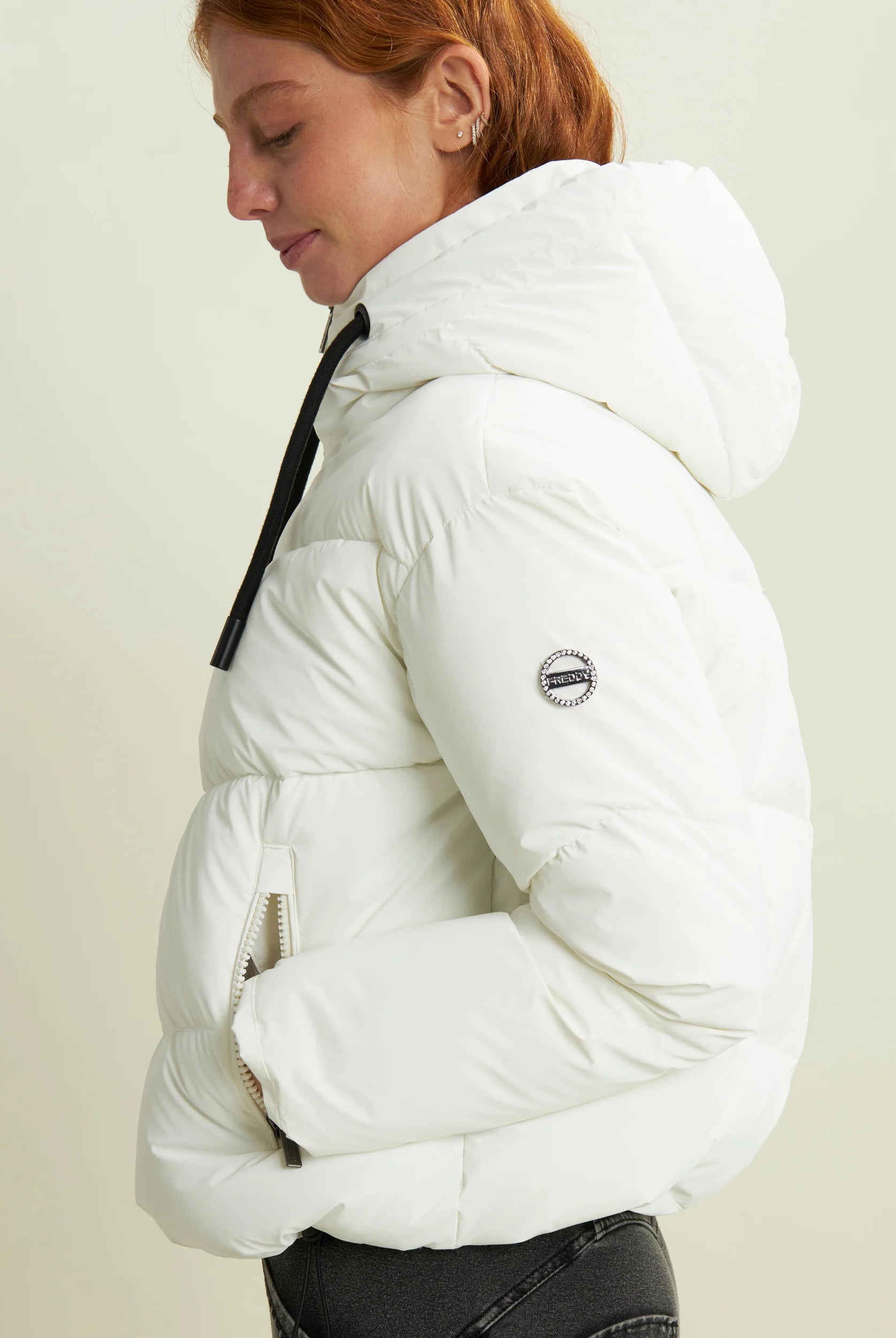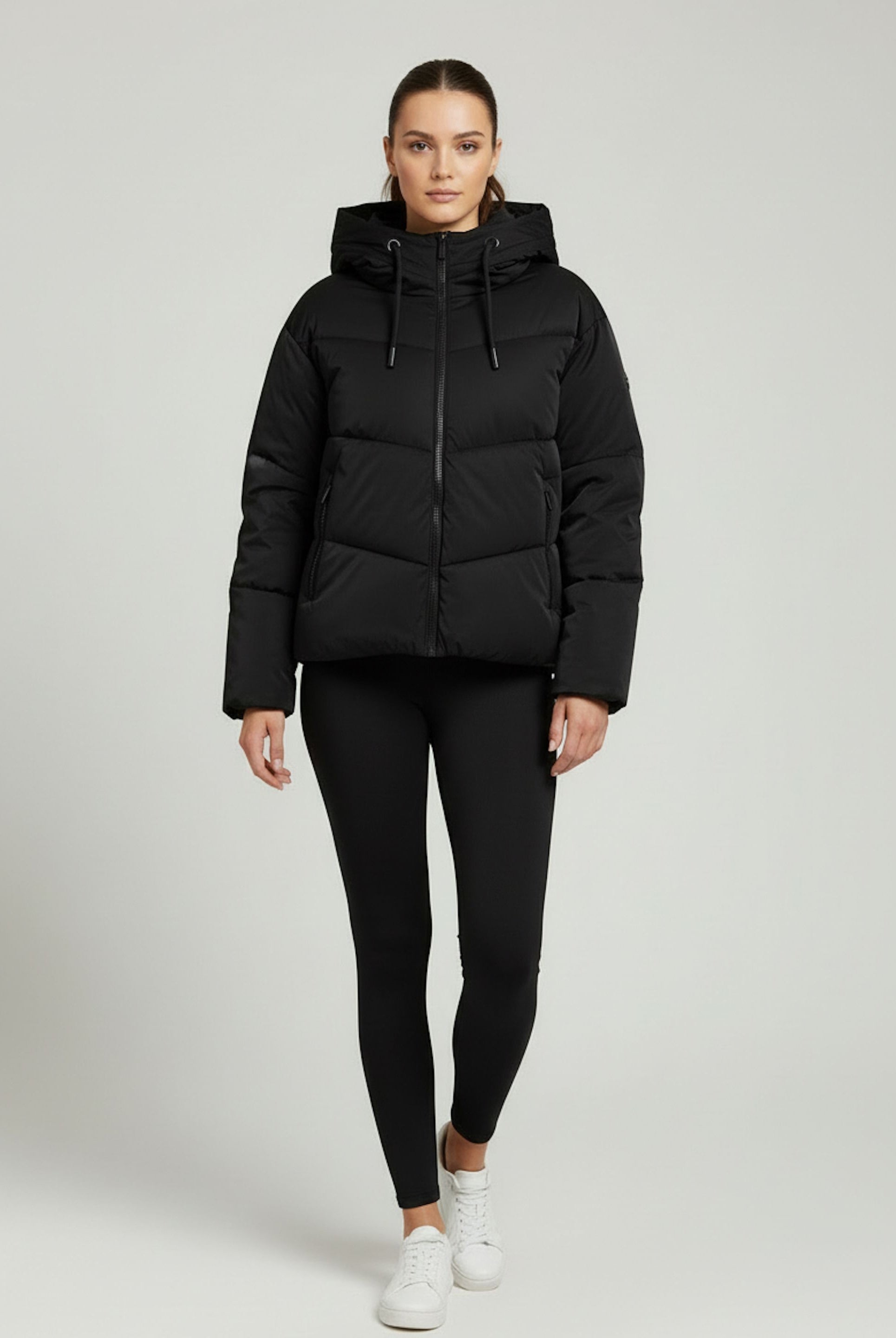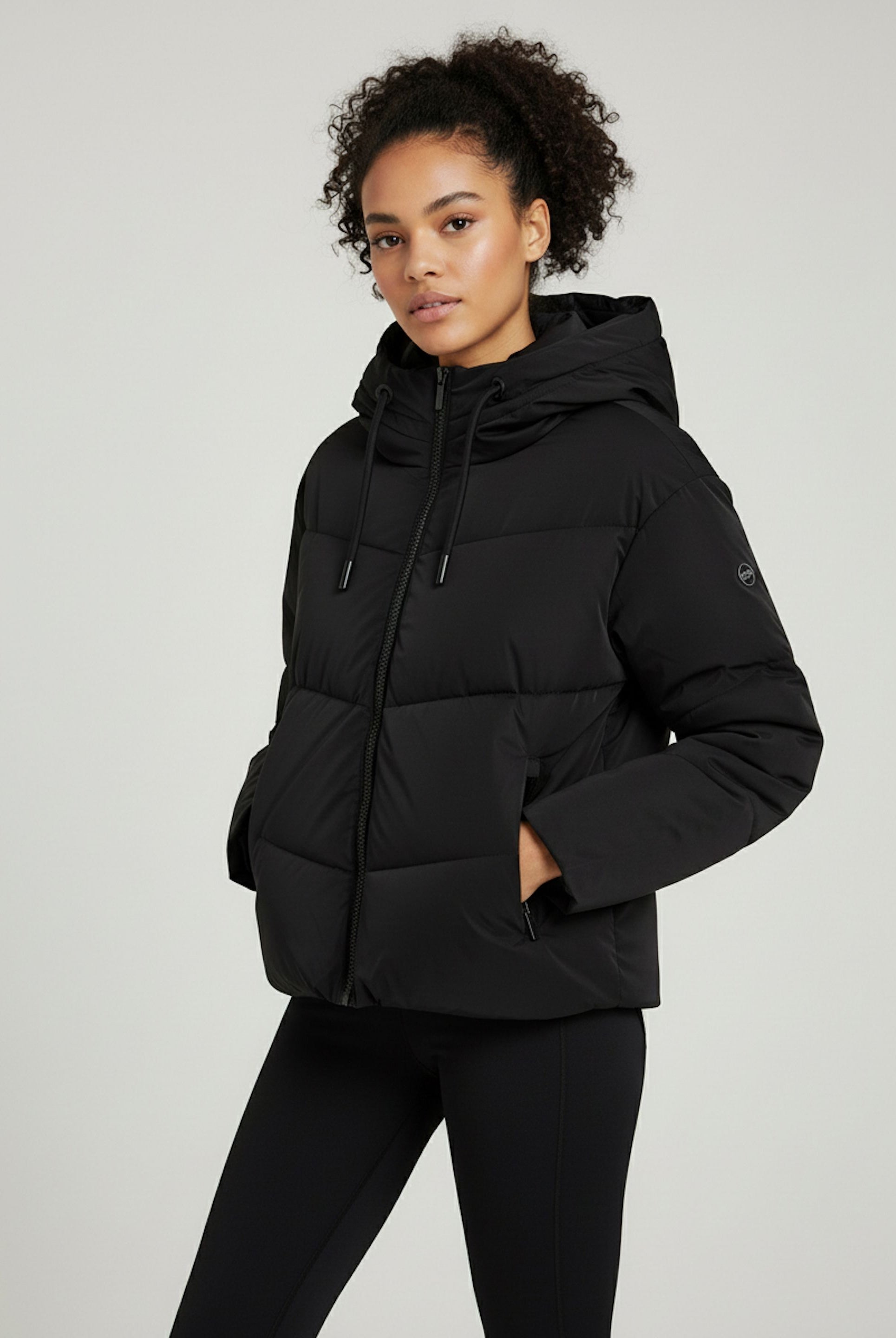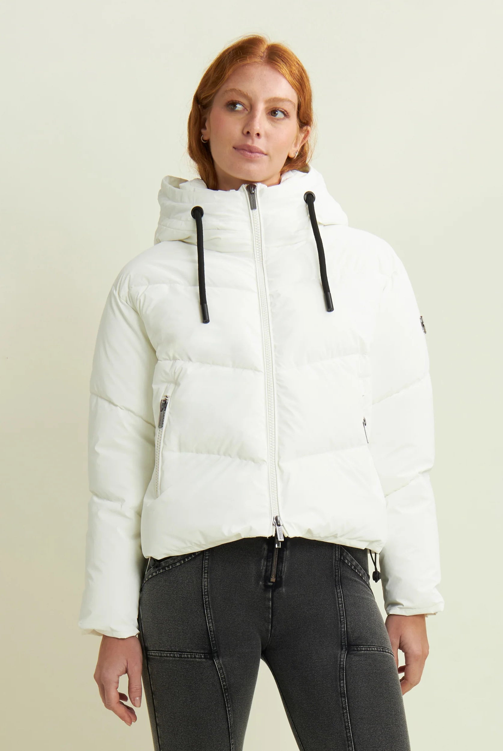 Women's cropped down jacket with turtleneck and adjustable drawstring