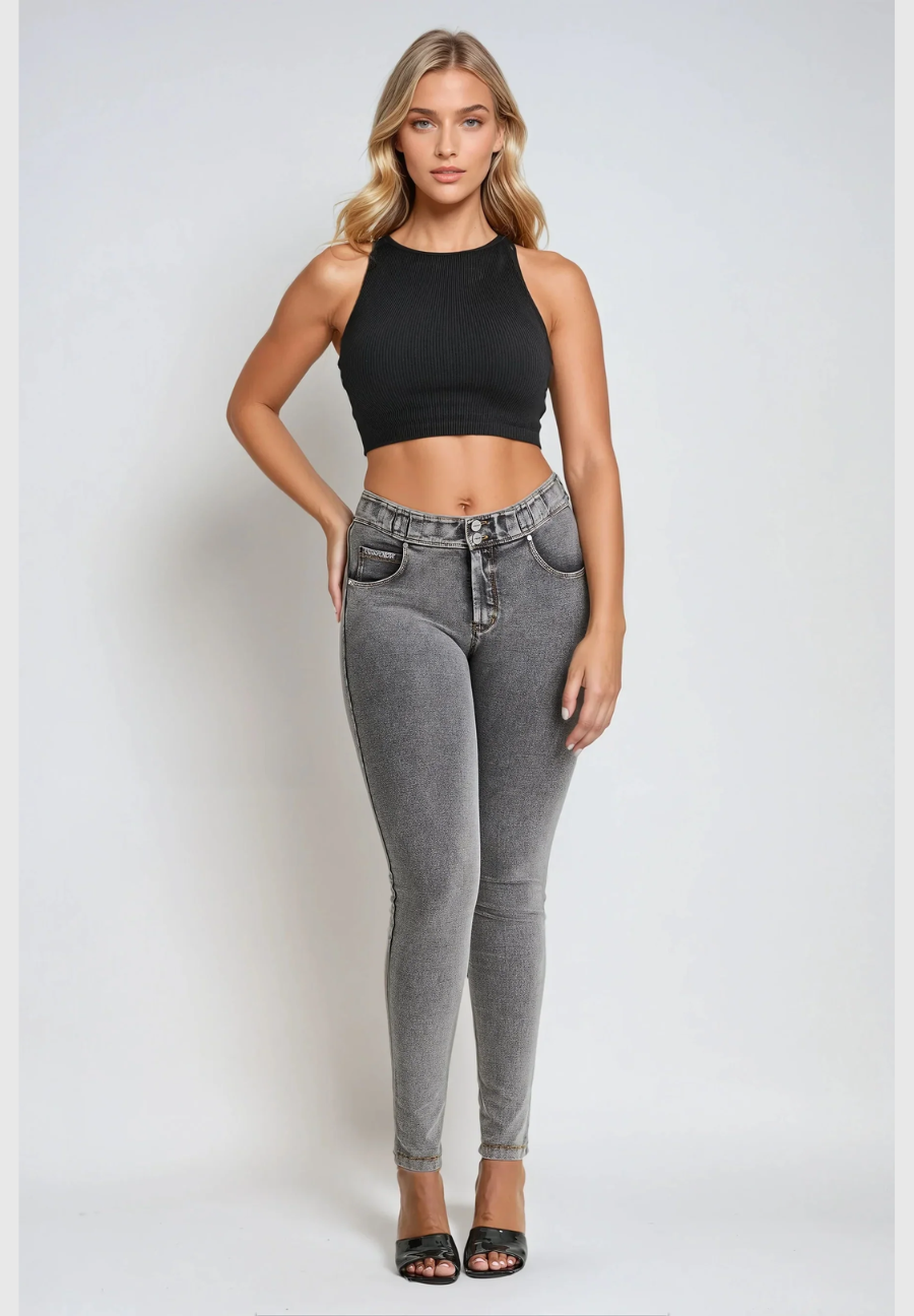 Experience the unique fit and feel of the NOW® Pants in Grey. It combines with a comfortable mid waist for everyday ease. Adding to that is a timeless full length, perfect for any season. The look is completed by a sleek skinny fit that hugs your curves. Crafted to offer the classic look of denim with the comfort of soft, flexible fabric. Belonging to the NOW® collection, these pants prioritize ultimate comfort and freedom, moving effortlessly with you. Pants that effortlessly blend comfort and fashionable looks.