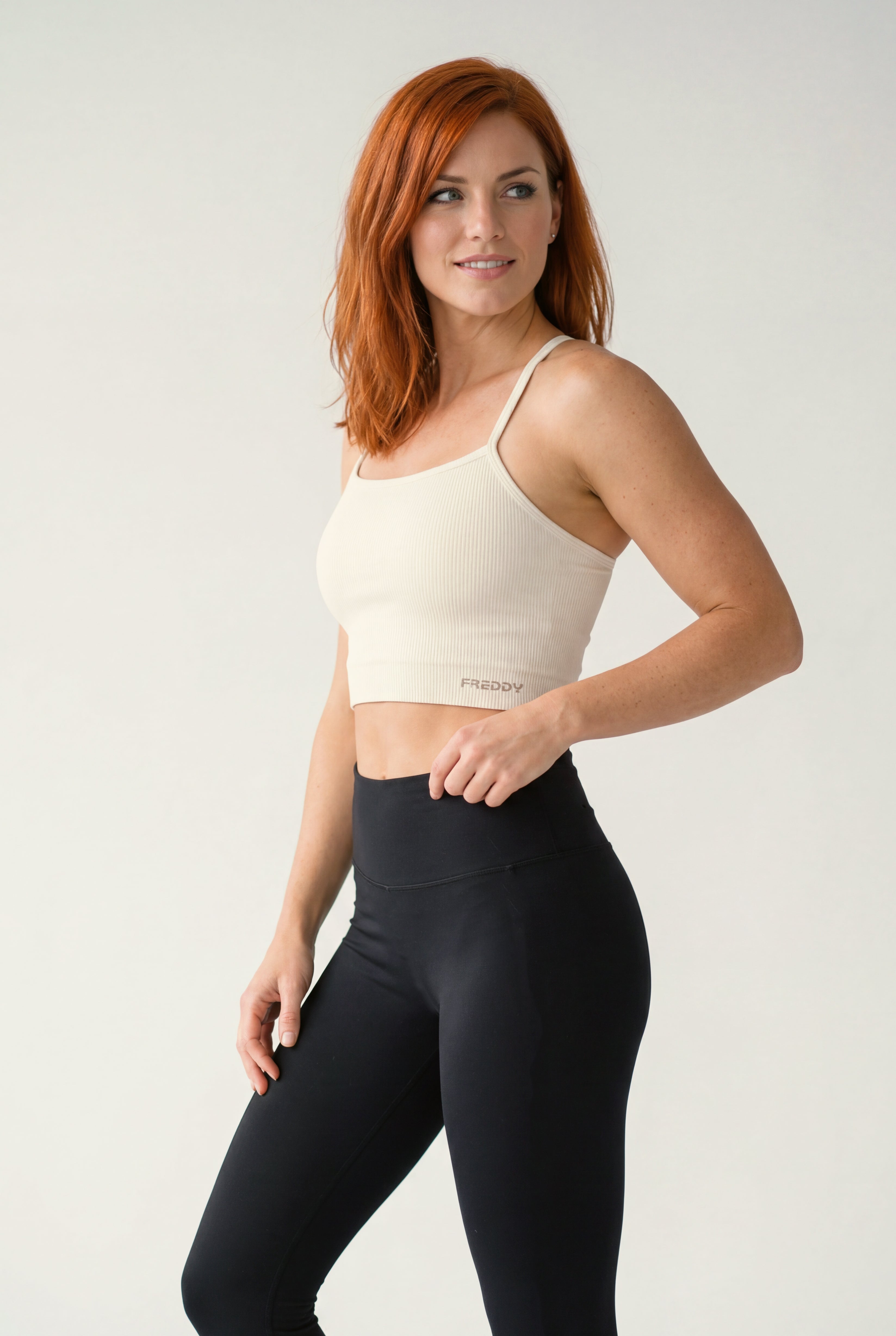 Medium support sports bra, ideal for variable intensity training. Made from seamless ribbed fabric, it seamlessly follows the contours of the body to provide total comfort. The design includes a wide neckline and thin shoulder straps crossed at the back, with a small FREDDY jacquard logo on the underbust band.