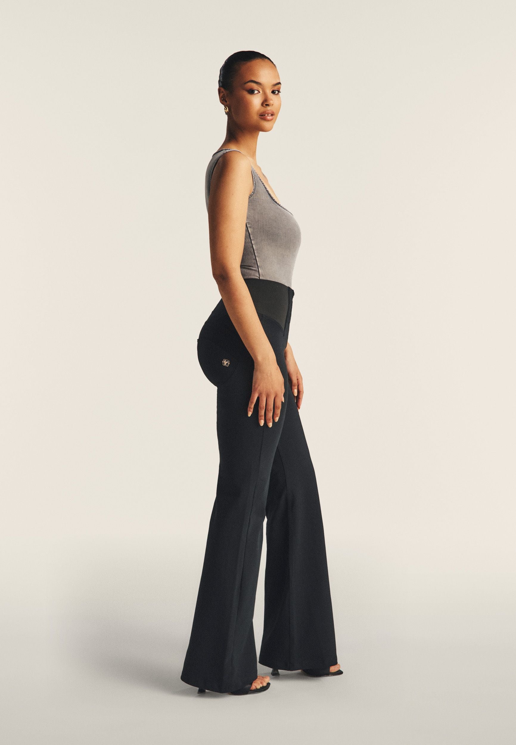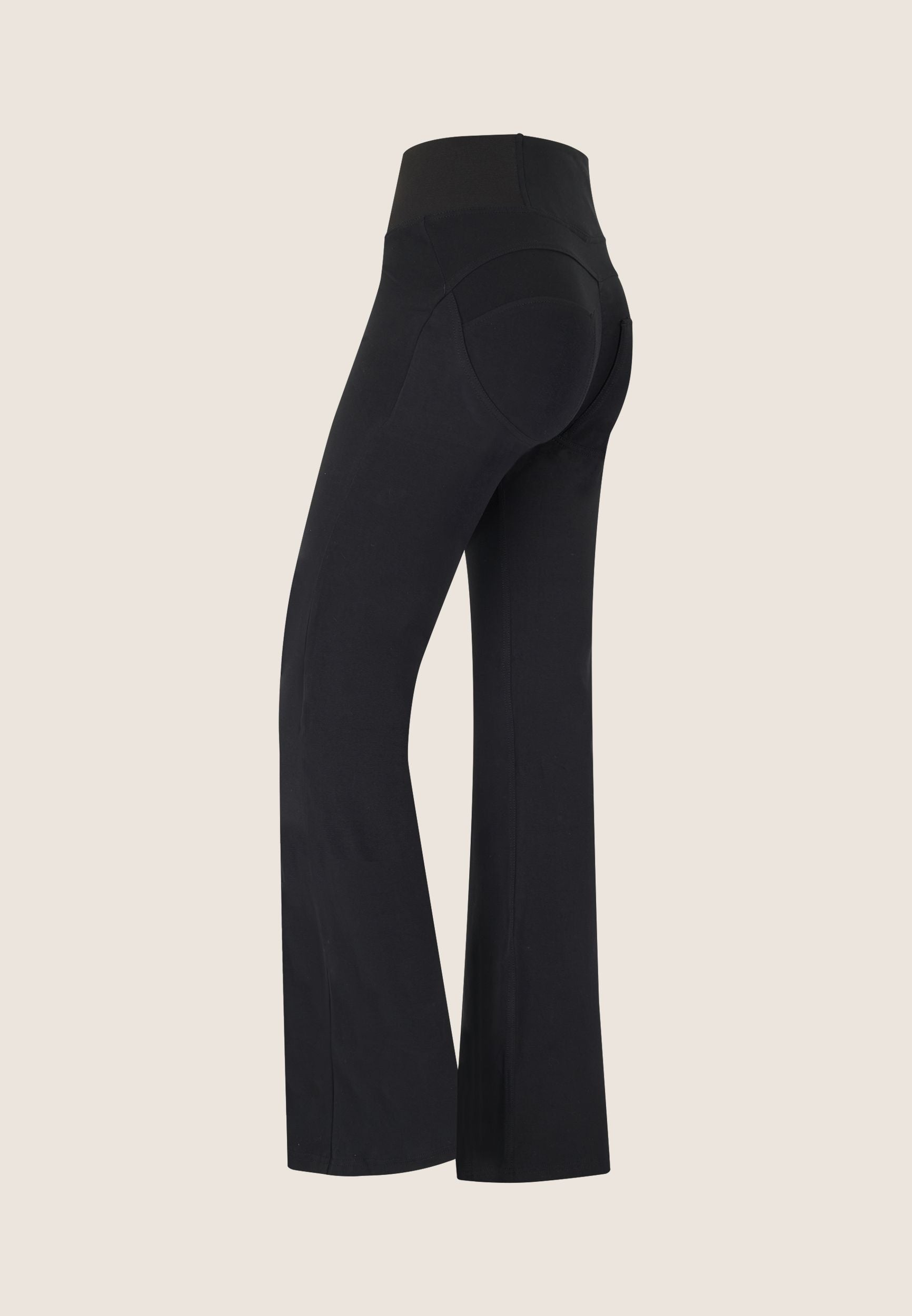 The WR.UP® Pants in Black combine iconic Freddy style with exceptional comfort. They feature a flattering high waist that offers gentle support and an elegant flare cut that visually elongates the legs. The look is completed by a timeless full length, perfect for any season. Crafted from a soft jersey knit with added stretch for flexibility. As part of the WR.UP® line, they feature patented technology designed to naturally enhance and sculpt your silhouette. Your go-to piece for days when you just want to feel great.