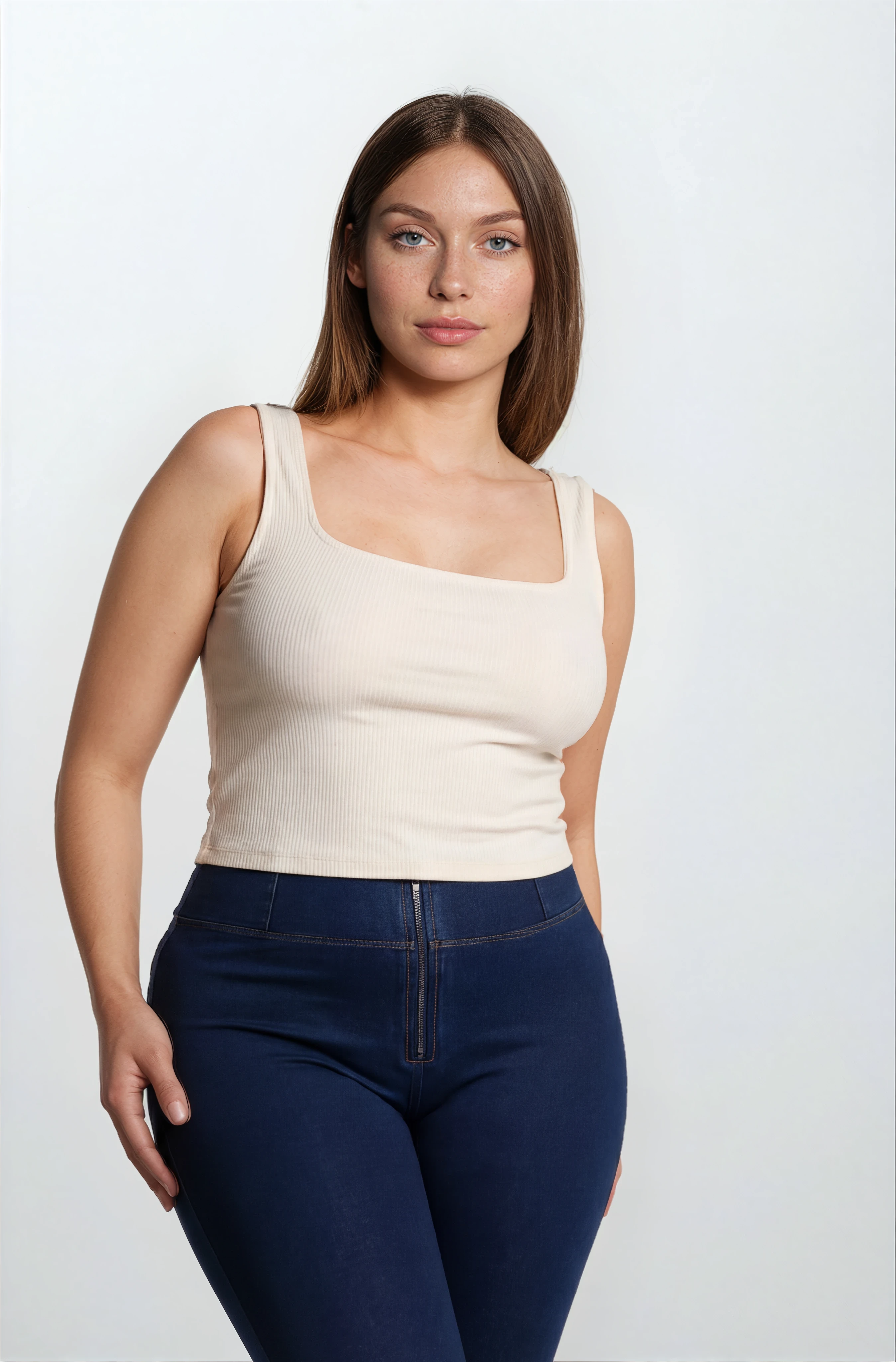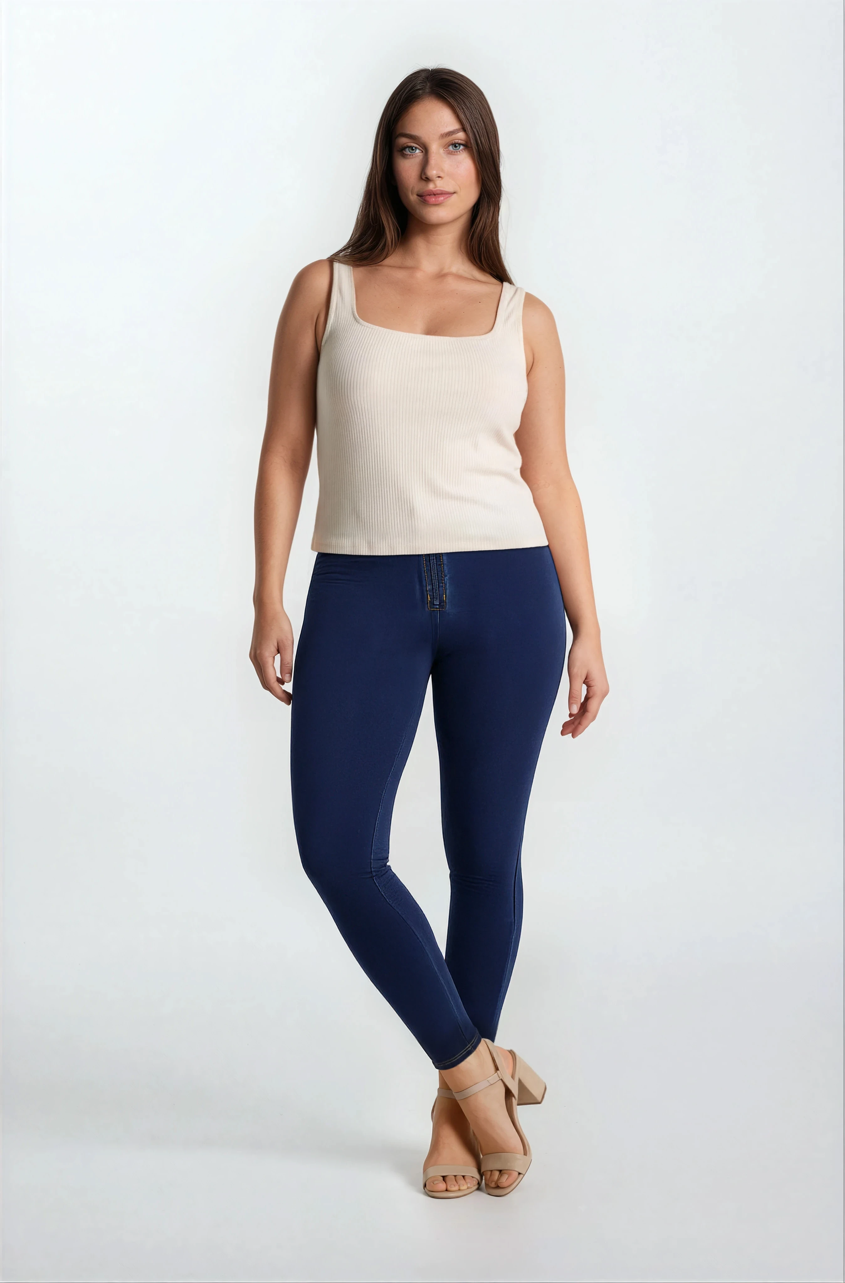 Experience the unique fit and feel of the WR.UP® Pants in Blue. This piece impresses with a flattering high waist that offers gentle support. Crafted designed with a stretch denim-effect material for authentic style and easy movement. As part of the WR.UP® line, they feature patented technology designed to naturally enhance and sculpt your silhouette. Italian design that radiates confidence and style.