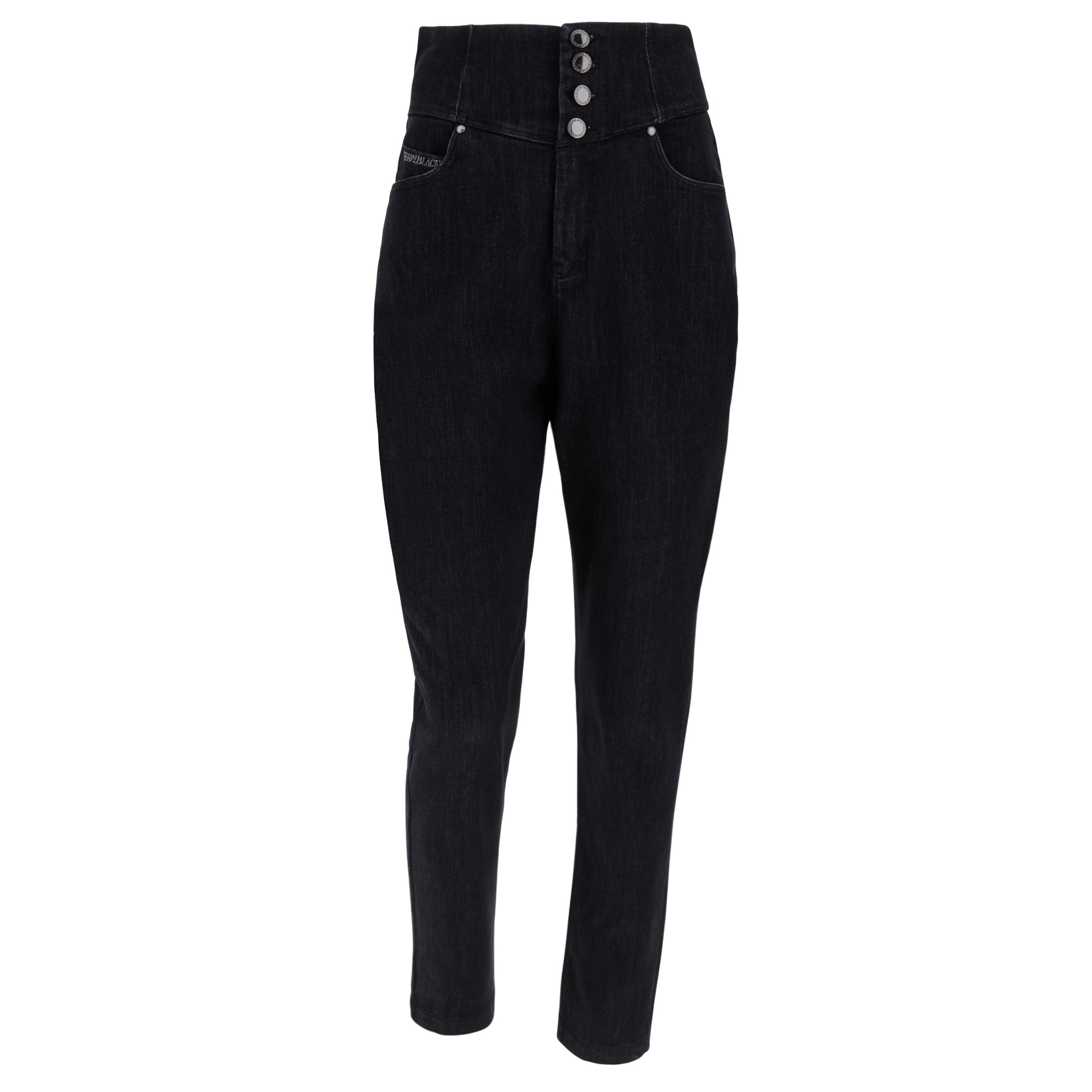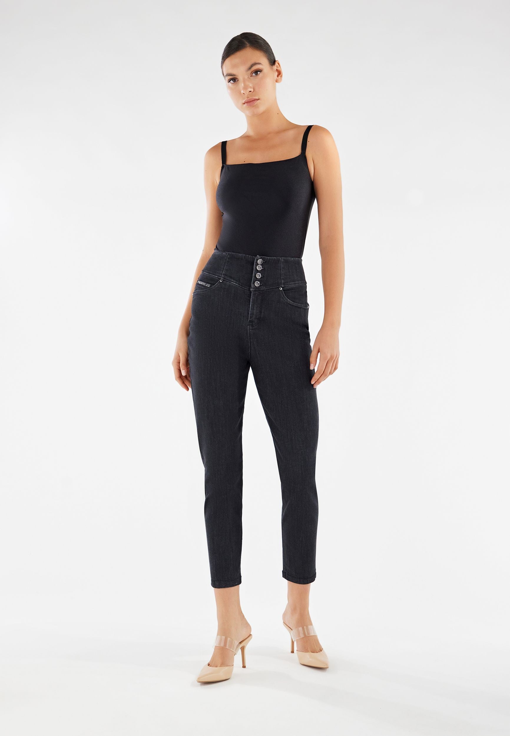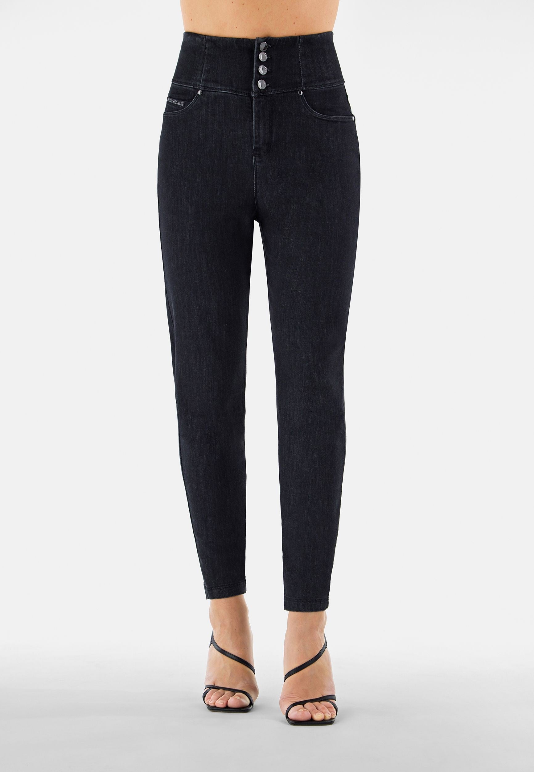 Freddy Fit Jeans - Buttoned Super High Waist Skinny - Black Denim – Black Seam - J7N