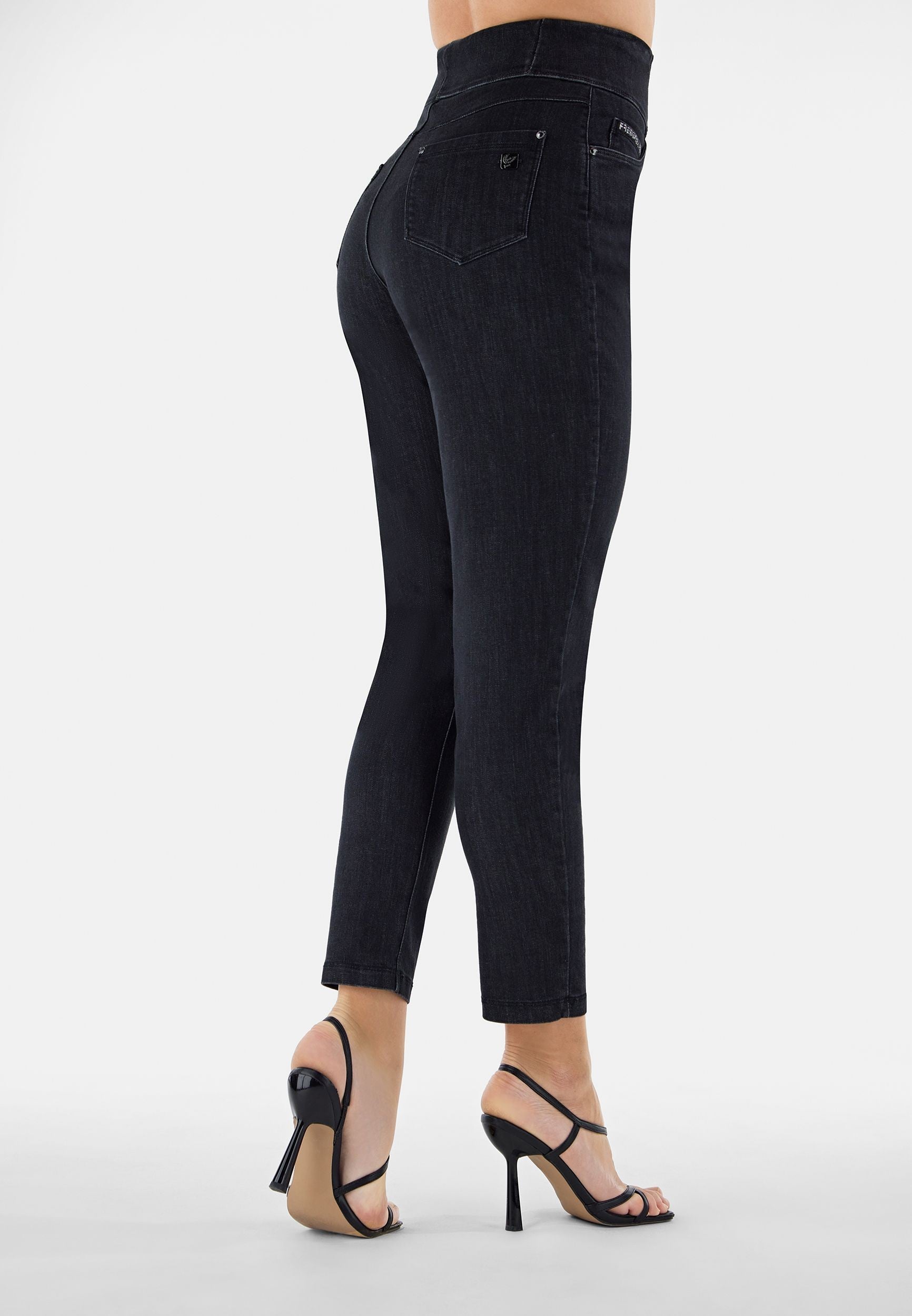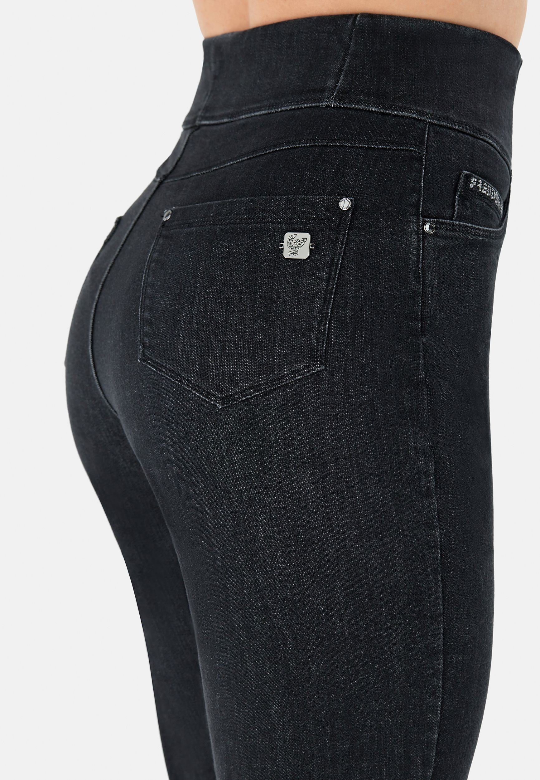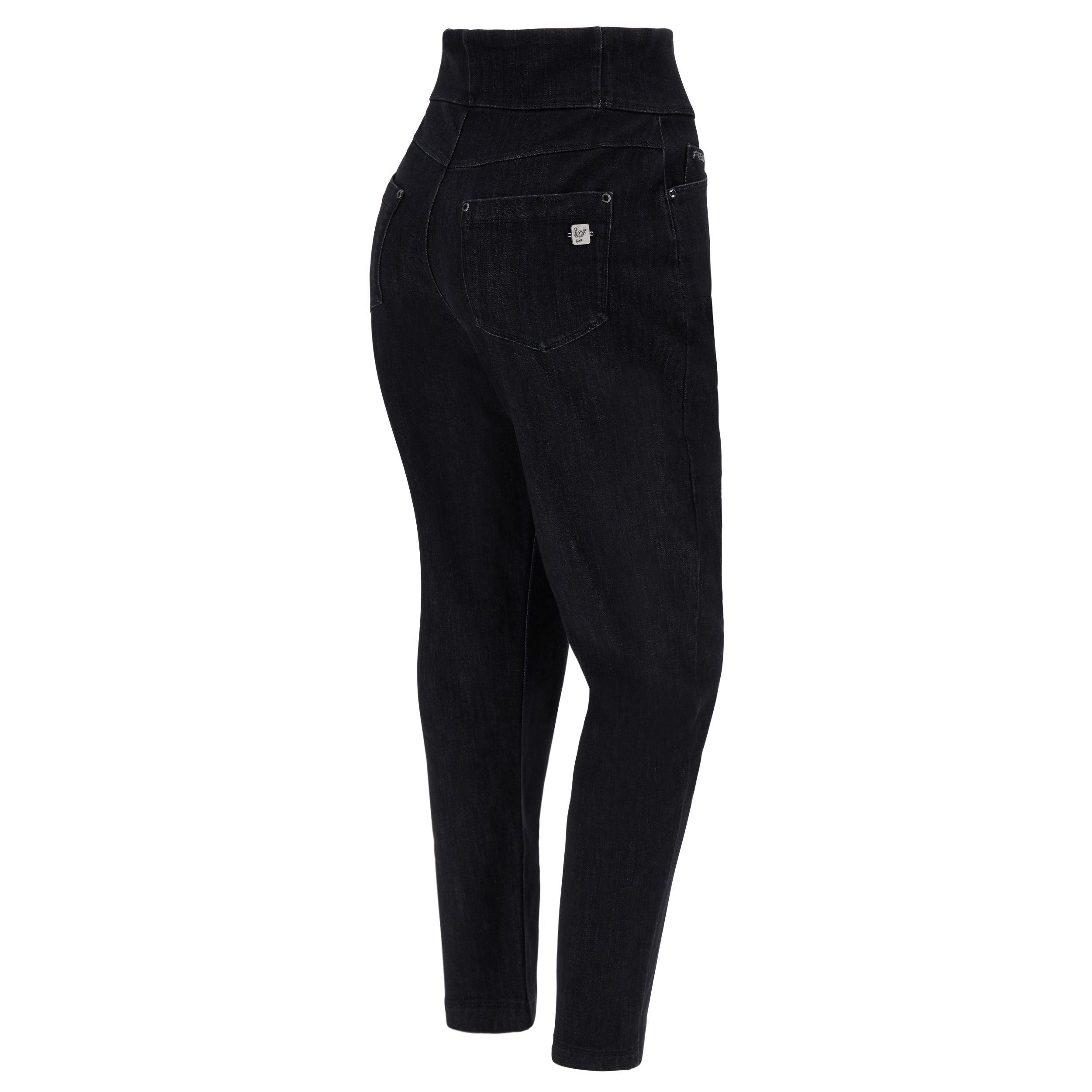 Freddy Fit Jeans - Buttoned Super High Waist Skinny - Black Denim – Black Seam - J7N
