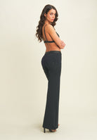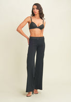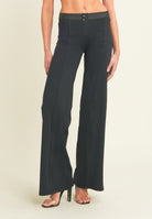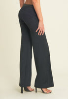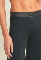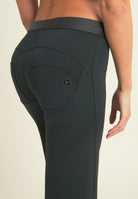 WR.UP® wide leg push-up trousers in breathable D.I.W.O.® performance fabric patented by Freddy, with coated treatment that gives an elegant leather effect on the front and on the waistband. The central seams slim the figure. Regular waist with two-buttons and a zip fastening.