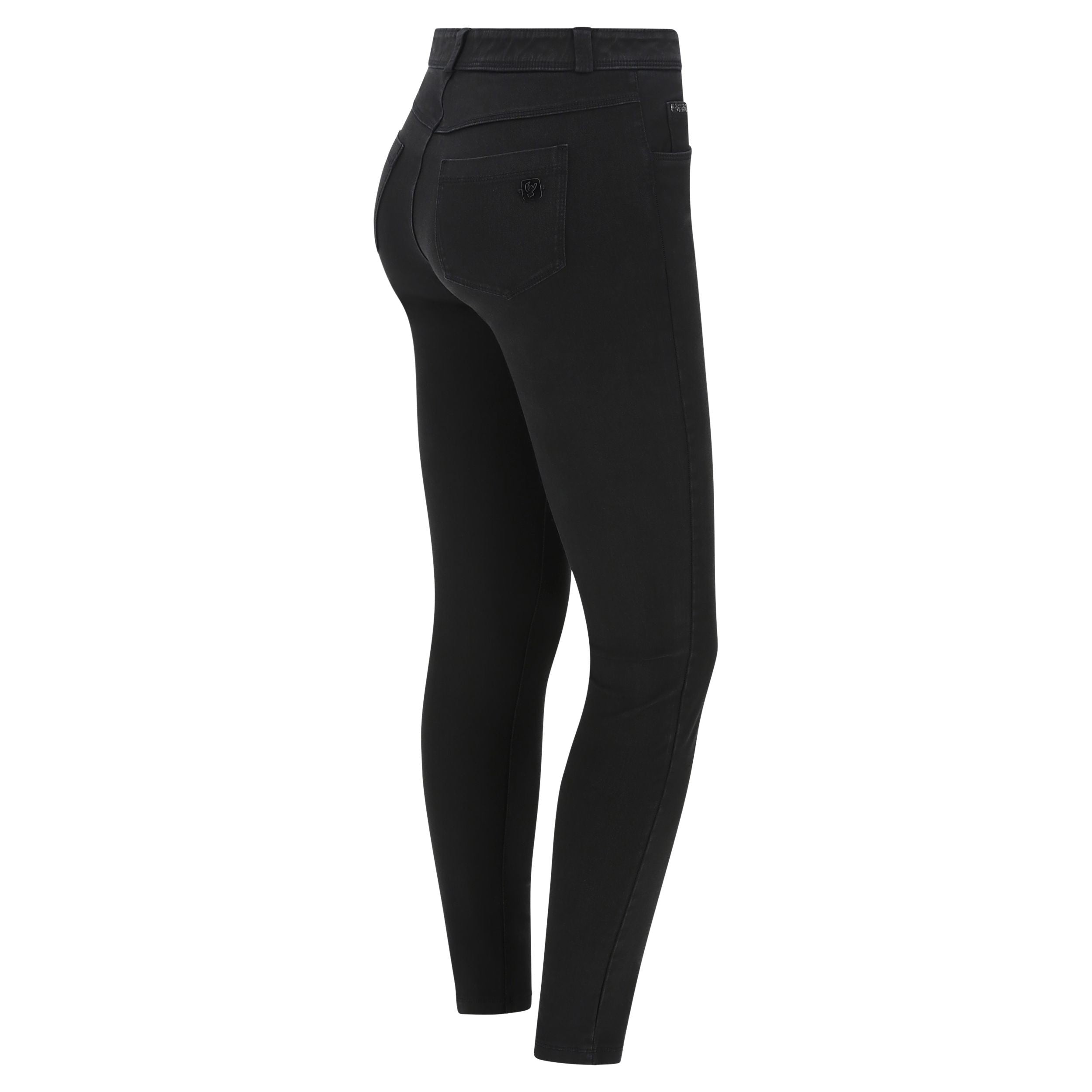 Poczuj wyjątkowe dopasowanie i komfort spodni Fit Jeans w kolorze czarnym. Ten model zachwyca smukłym, obcisłym krojem podkreślającym Twoje kształty. Dodatkowo posiada wygodny średni stan, zapewniający komfort na co dzień. Całość dopełnia ponadczasowa długość do kostek, idealna na każdą porę roku. Wykonane z elastycznego materiału o efekcie denimu, zapewniającego autentyczny styl i swobodę ruchów. Twój niezawodny wybór na dni, kiedy chcesz po prostu czuć się świetnie.