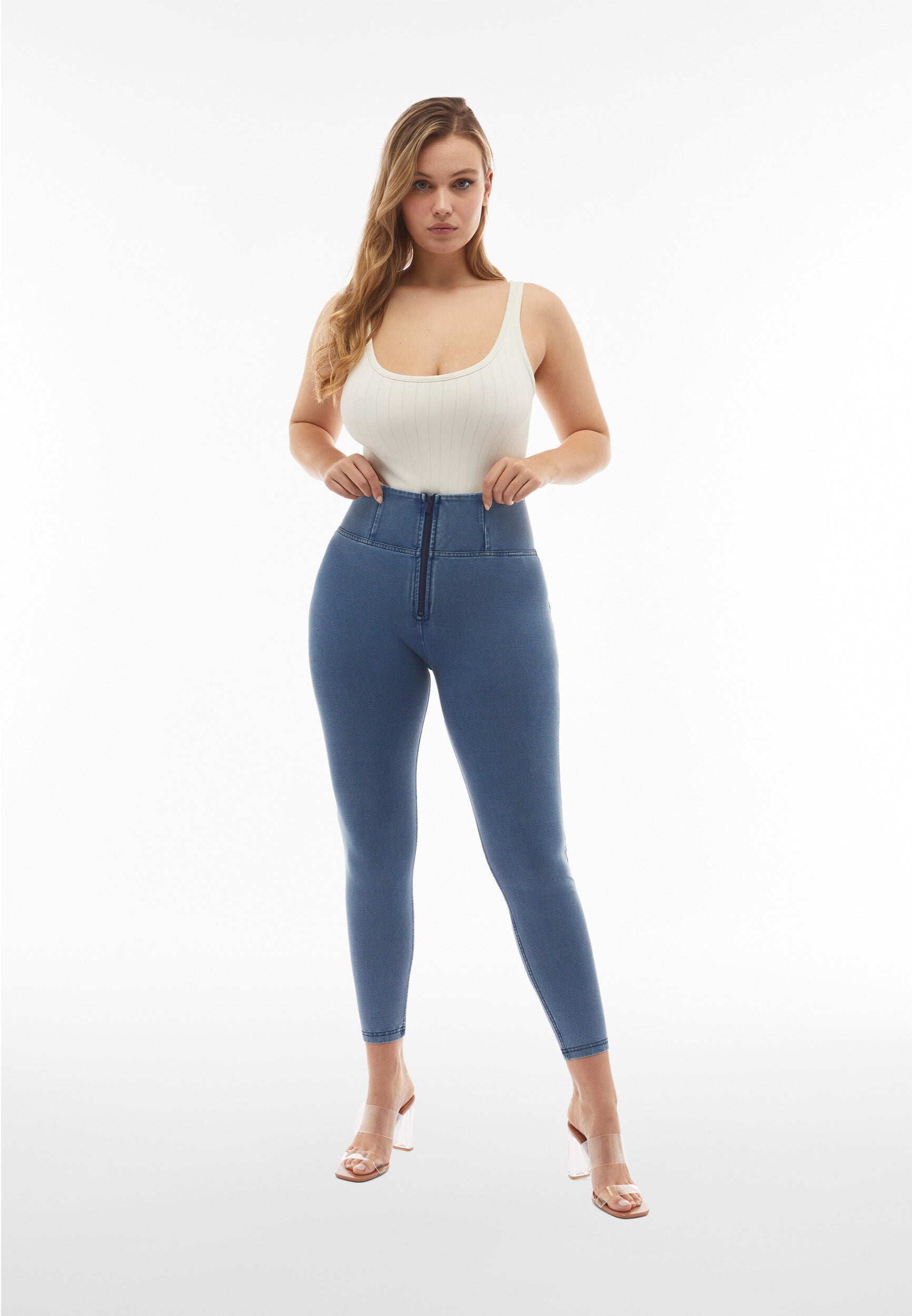 Spodnie WR.UP® w kolorze niebieskim: zaprojektowane, aby podkreślać sylwetkę i poruszać się razem z Tobą. Łączą nowoczesną długość 7/8, która subtelnie eksponuje kostki. Dodatkowo mają pochlebiający, wysoki stan, który oferuje delikatne wsparcie. Całość dopełnia smukły, obcisły krój, który otula Twoje kształty. Wykonane, aby zapewnić klasyczny wygląd denimu z komfortem miękkiej, elastycznej tkaniny. Jako część linii WR.UP® posiadają opatentowaną technologię zaprojektowaną, aby naturalnie podkreślać i modelować sylwetkę. Idealne na niezliczone okazje, od casualowych po eleganckie.