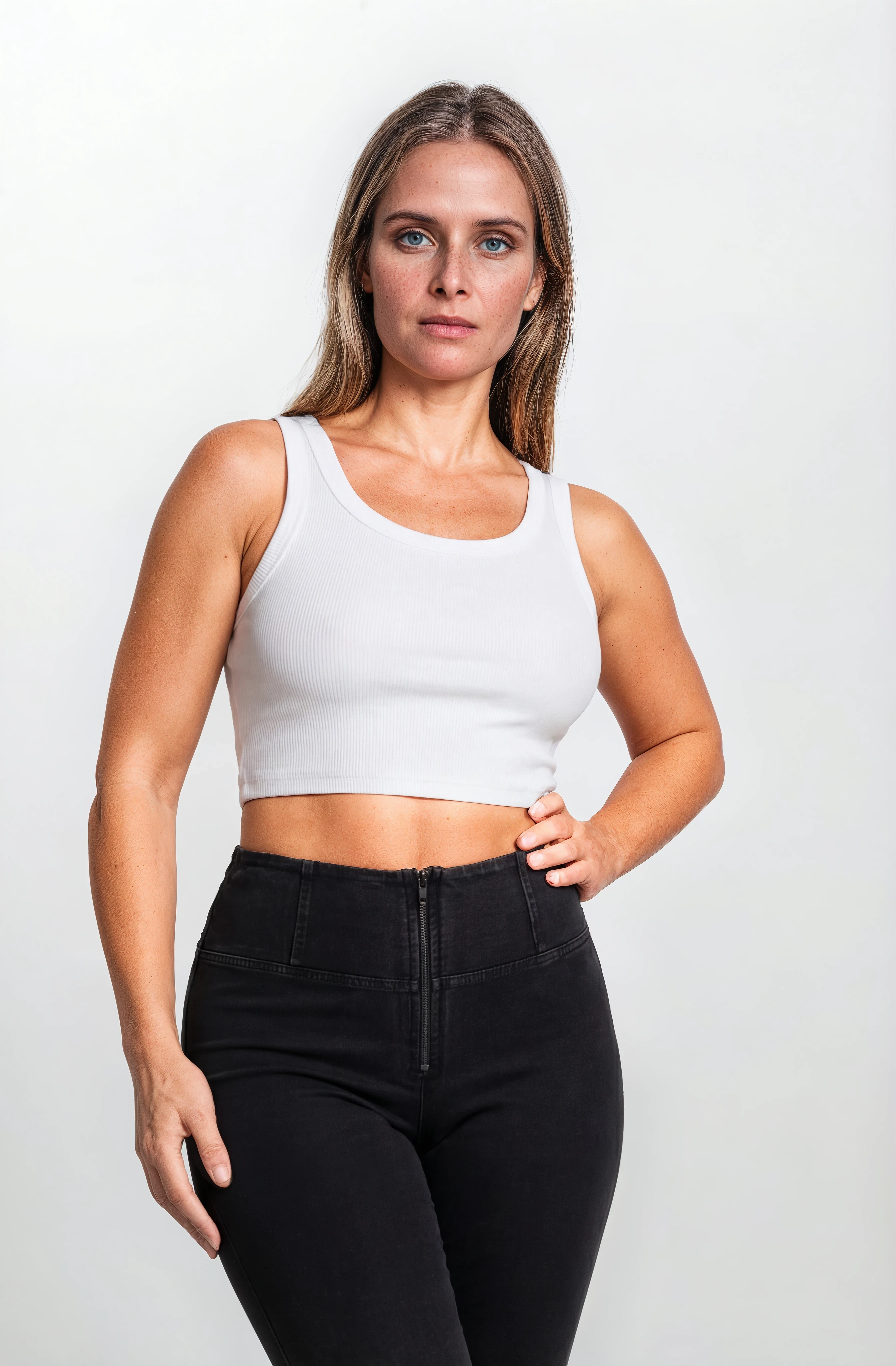 Spodnie WR.UP® w kolorze czarnym łączą ikoniczny styl Freddy z wyjątkowym komfortem. Mają nowoczesną długość 7/8, która subtelnie podkreśla kostki. Dodatkowo posiadają smukły, obcisły krój, który dopasowuje się do Twoich kształtów. Całość dopełnia pochlebna wysoka talia, oferująca delikatne wsparcie. Wykonane, aby zapewnić klasyczny wygląd denimu z komfortem miękkiej, elastycznej tkaniny. Jako część linii WR.UP® posiadają opatentowaną technologię zaprojektowaną, aby naturalnie podkreślić i wymodelować Twoją sylwetkę. Twój niezawodny element na dni, kiedy po prostu chcesz czuć się świetnie.