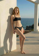 Bikinitopp i bandeaumodell med knytband - BLACK