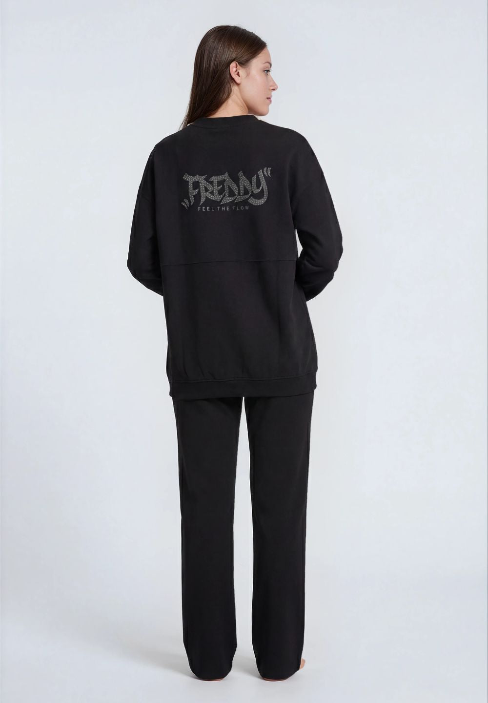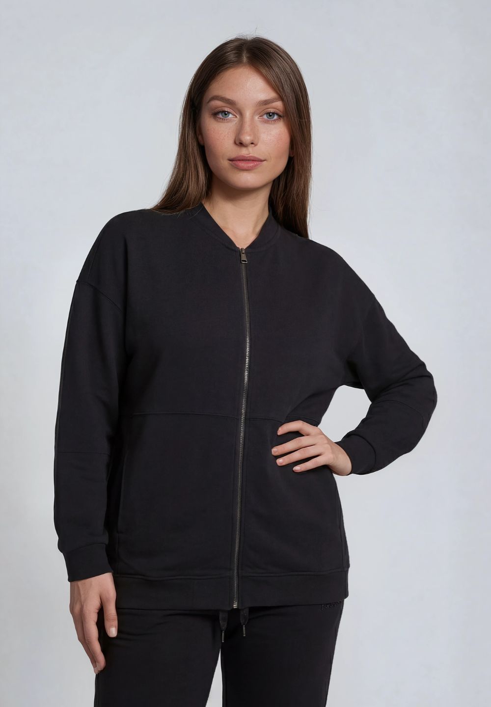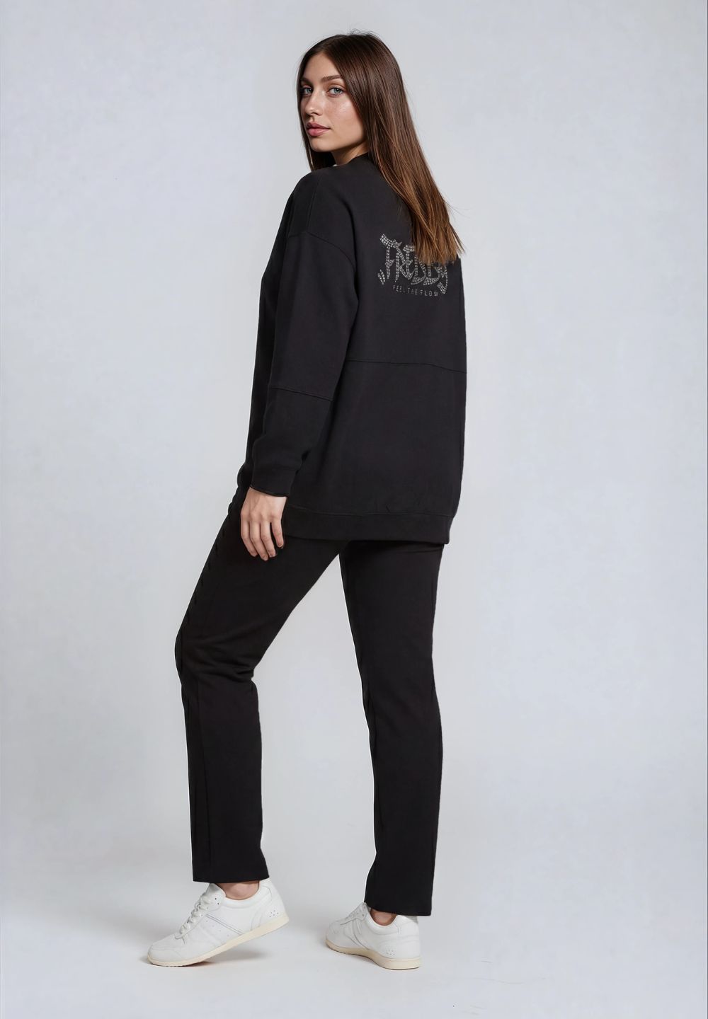 Oversize zip sweatshirt, graphic “Feel the Flow” back - Black