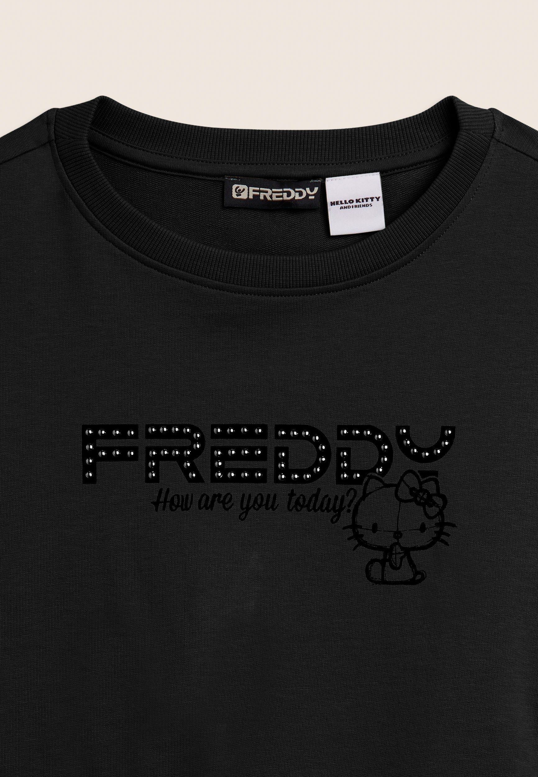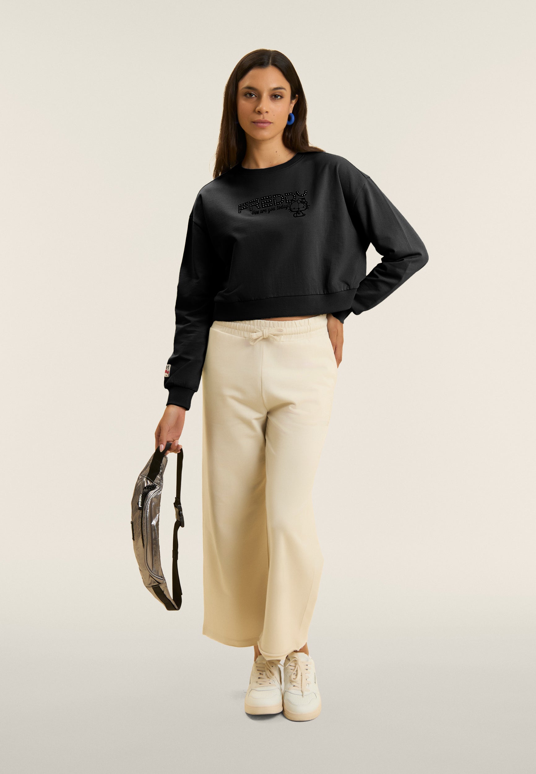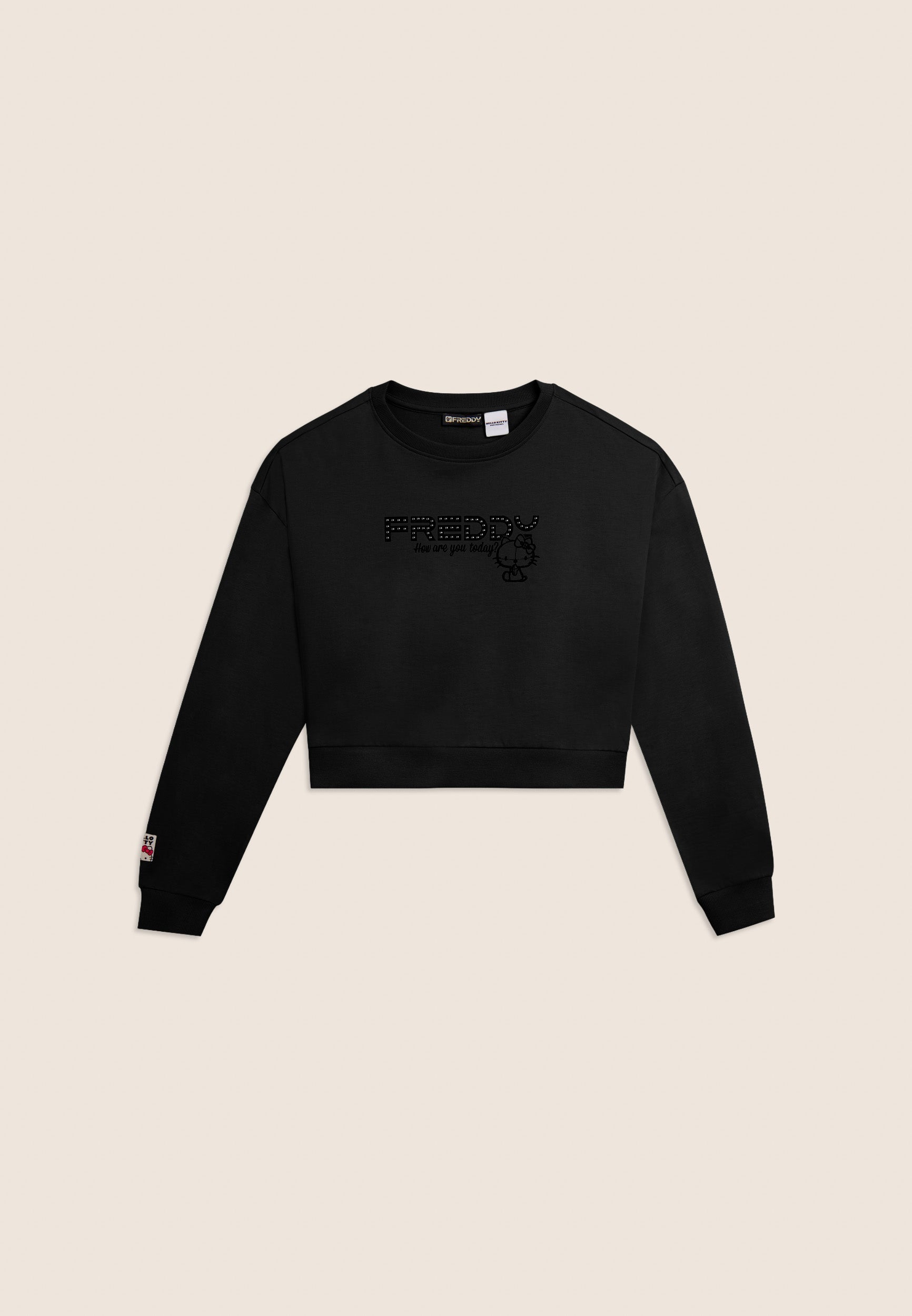Cropped crew neck sweatshirt with Hello Kitty studs logo - Black