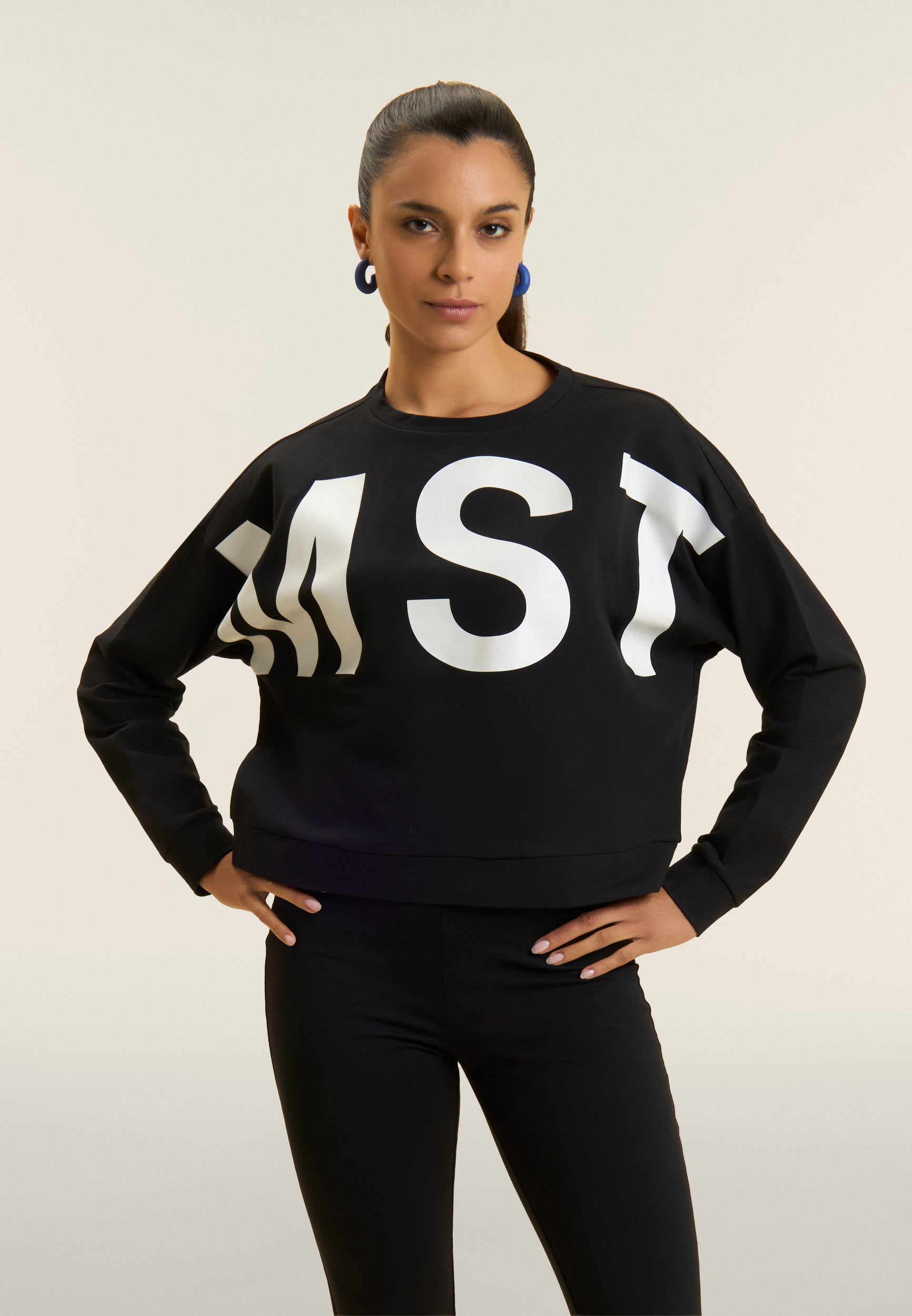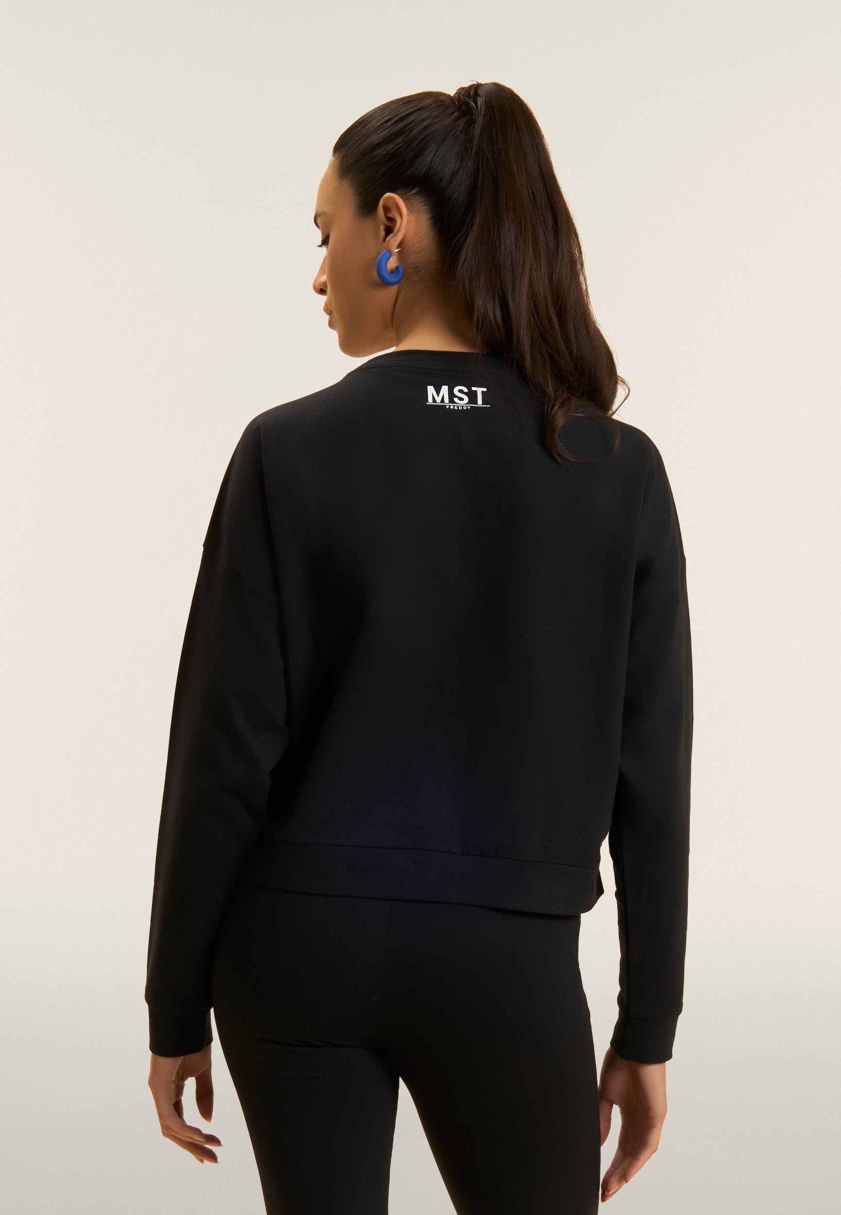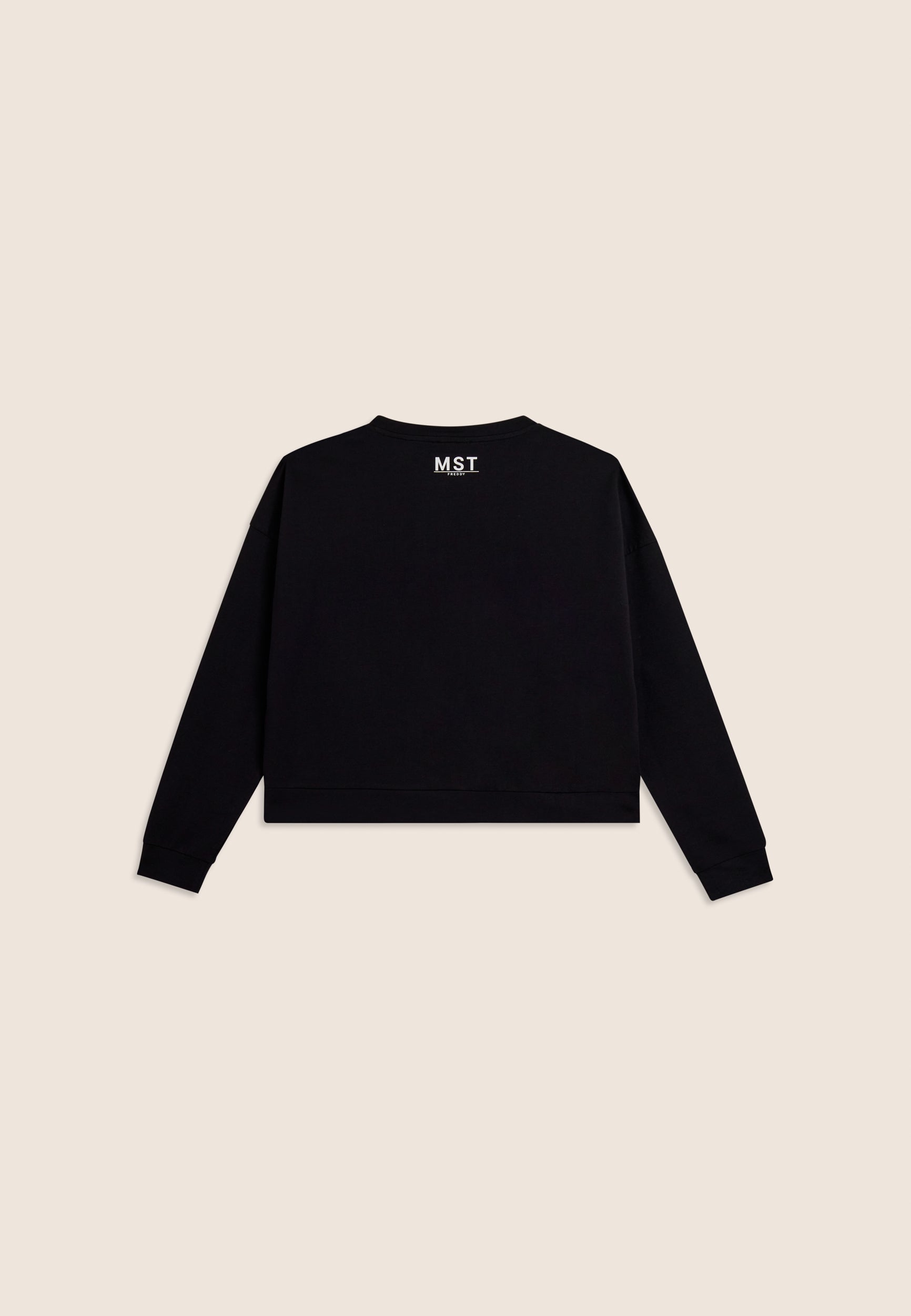 Cropped crew neck sweatshirt with MST maxi print - Black
