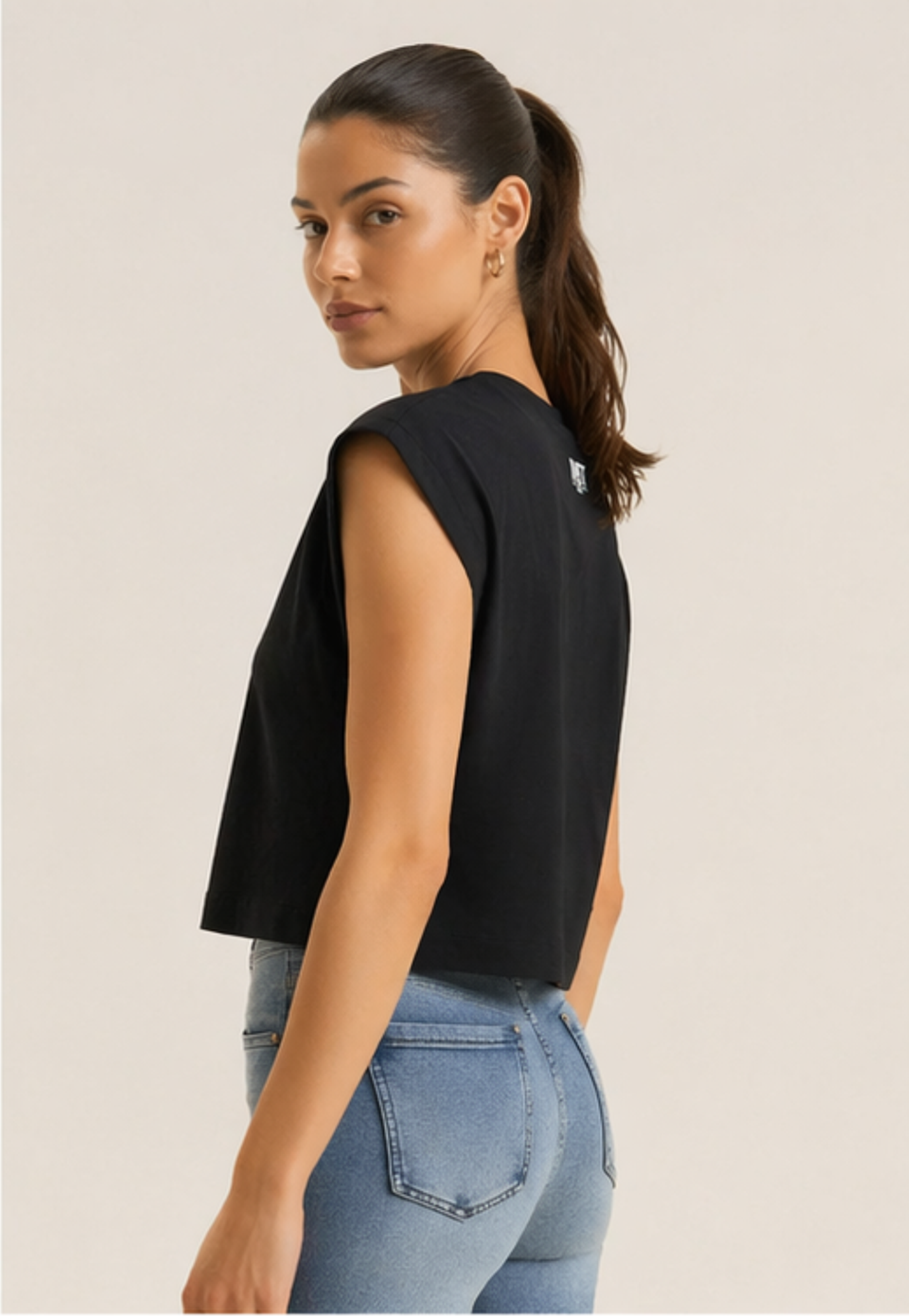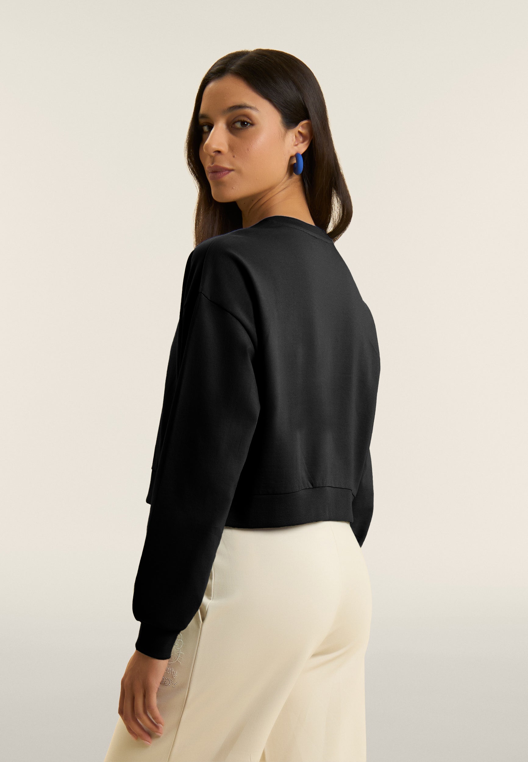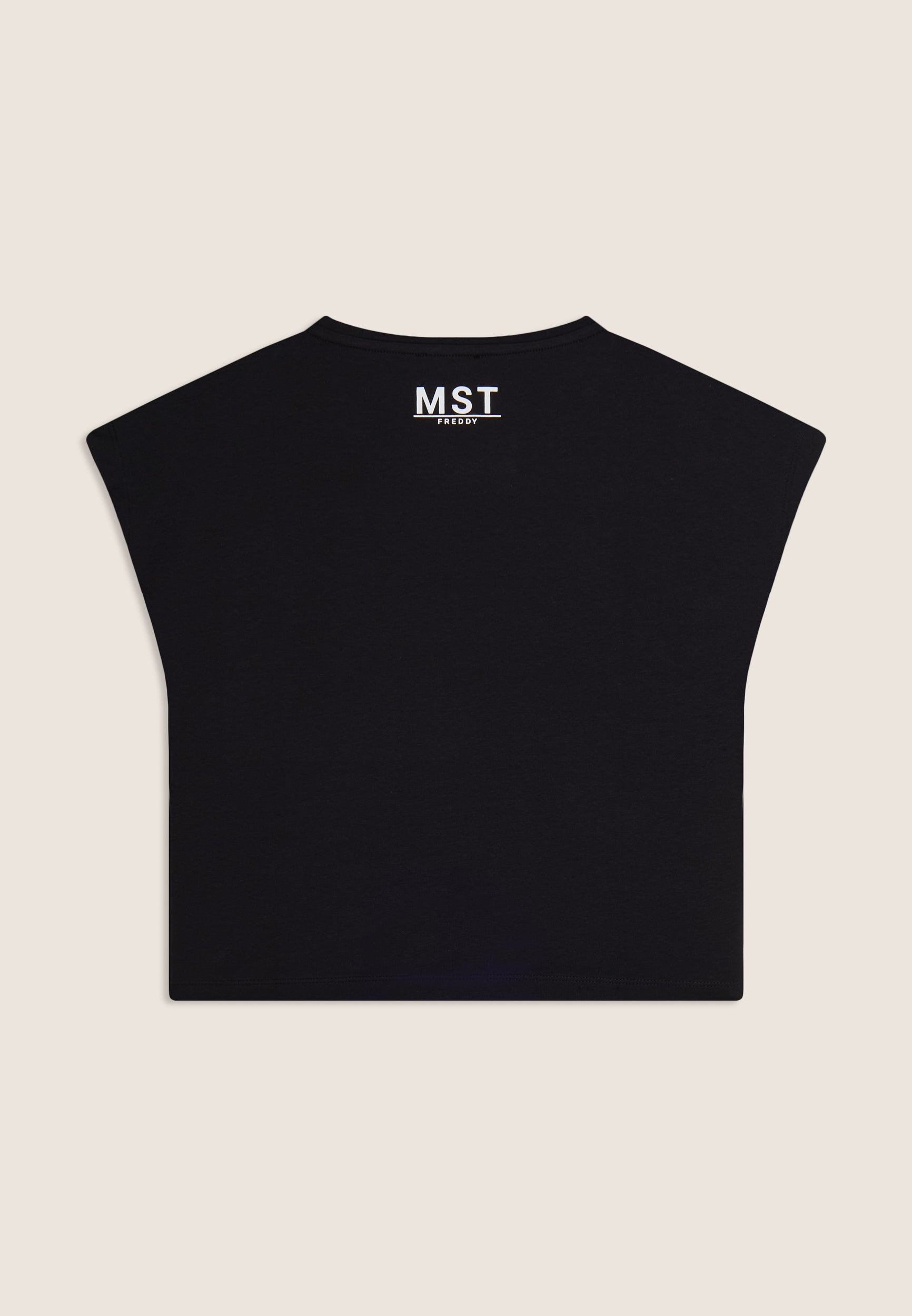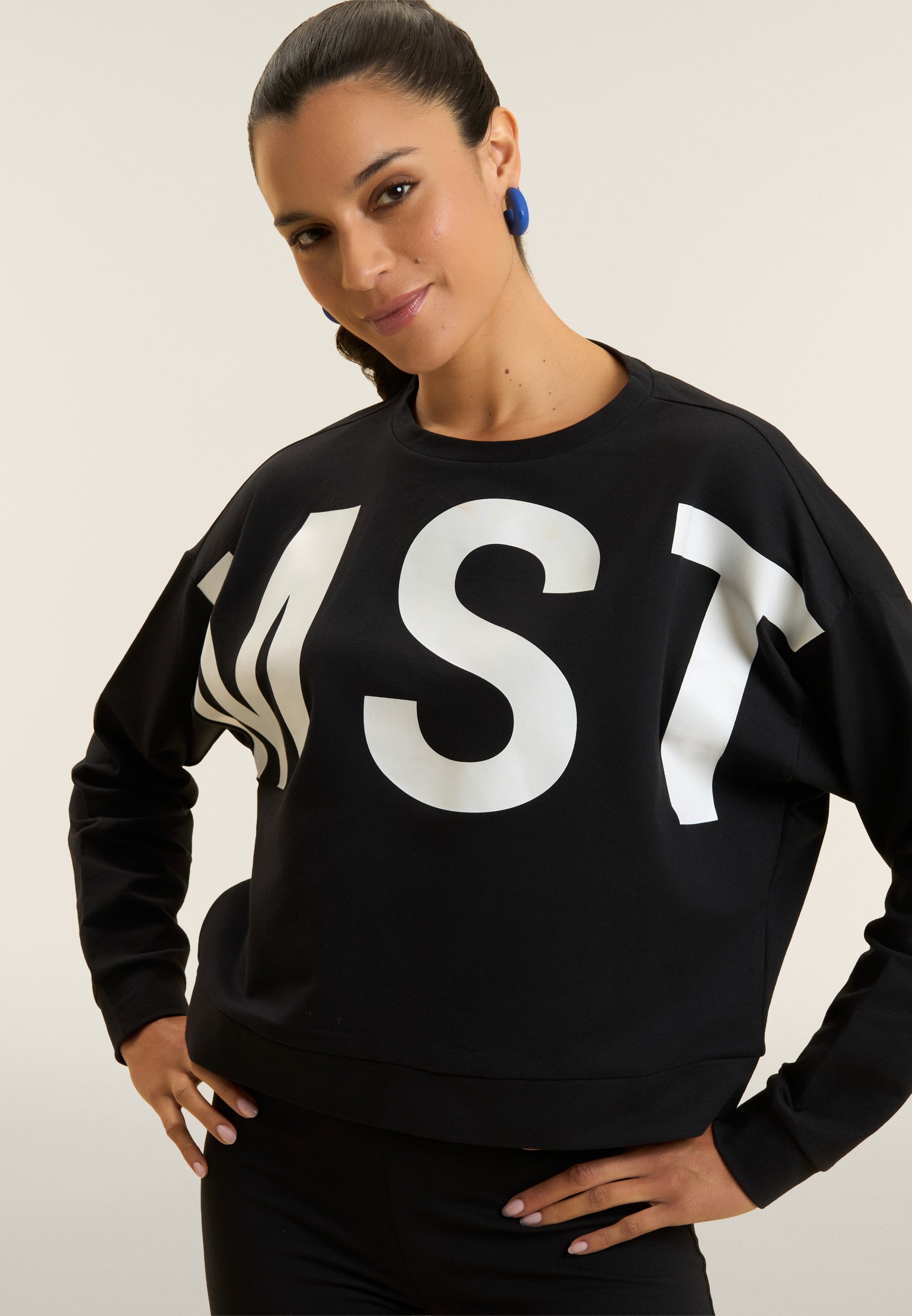 Cropped crew neck sweatshirt with MST maxi print - Black