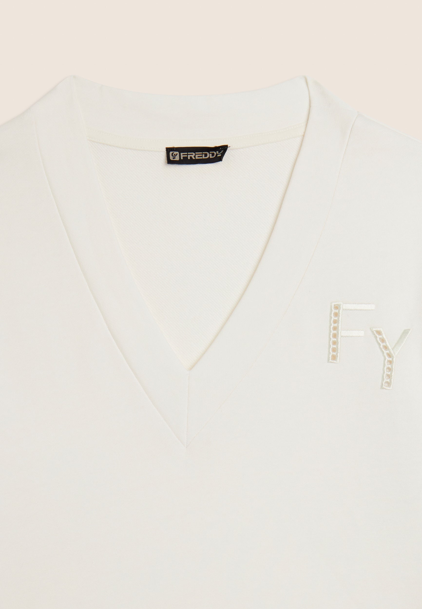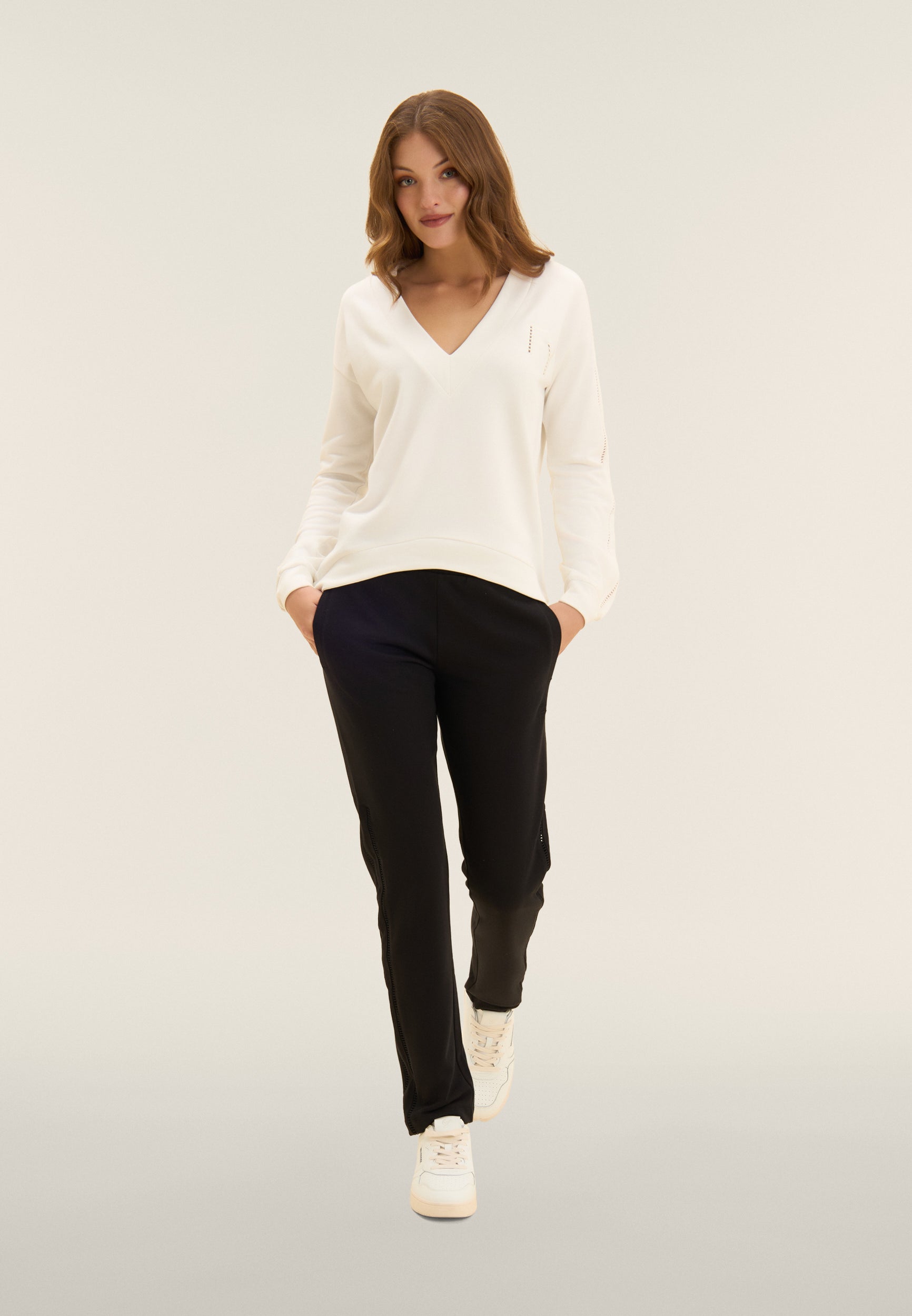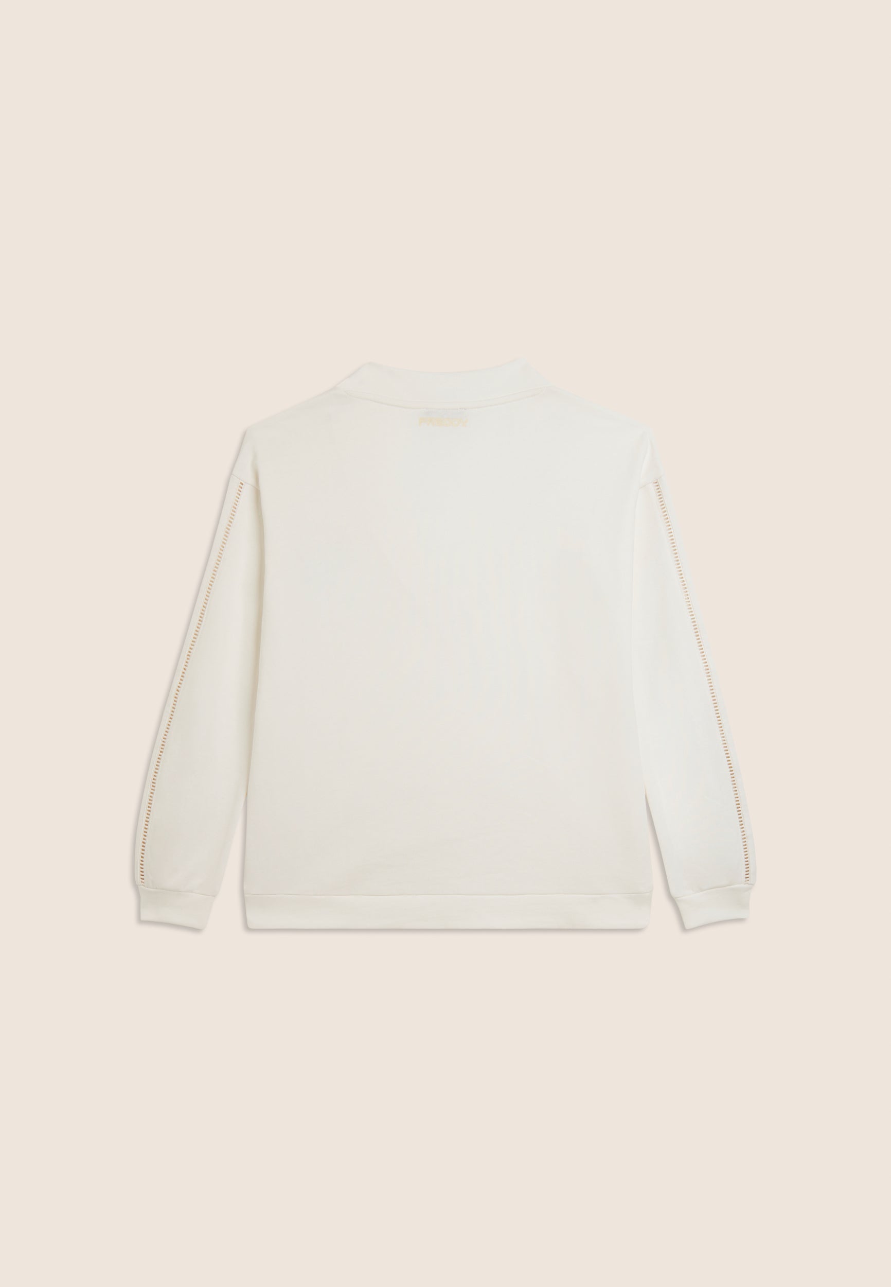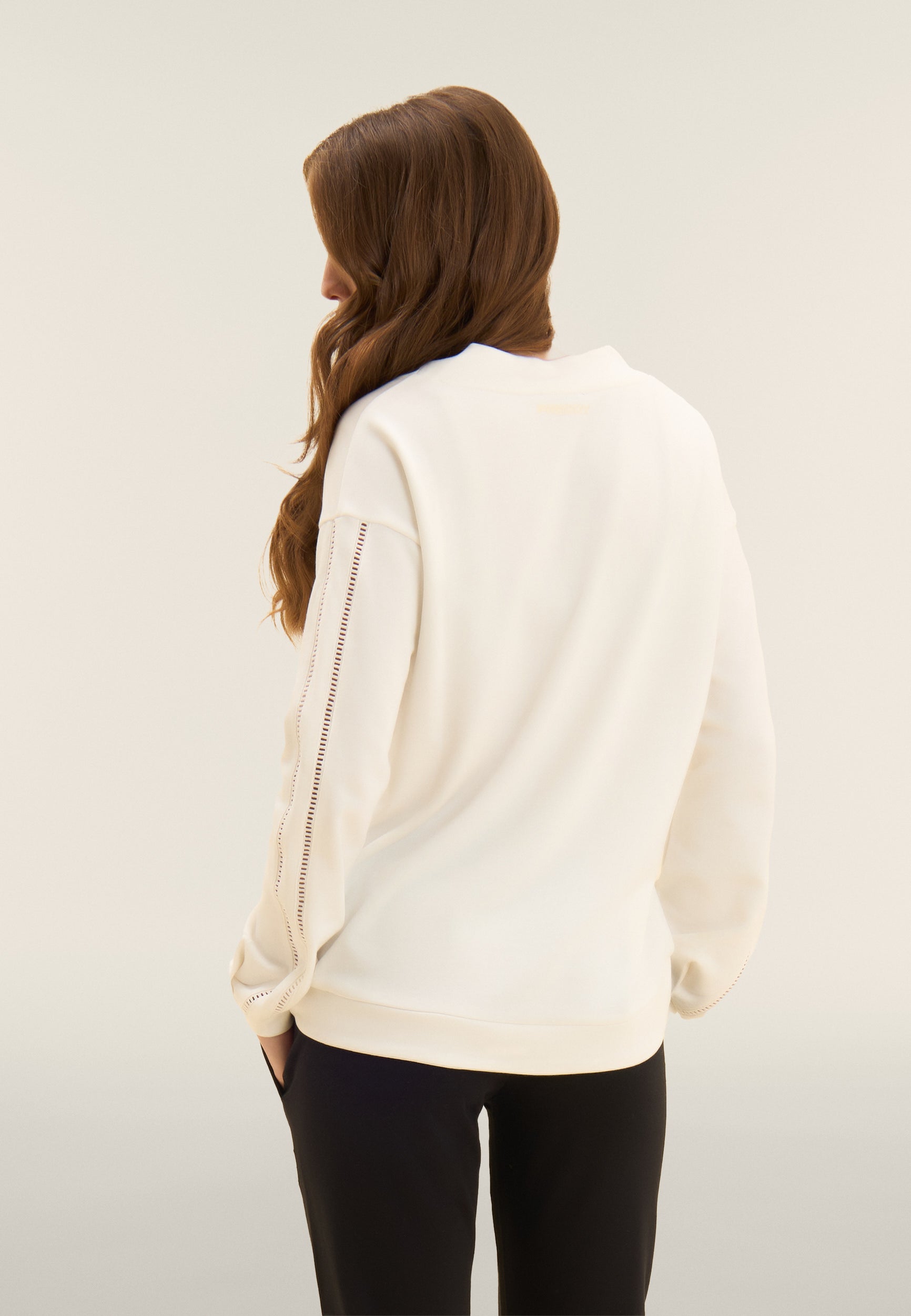 V-neck sweatshirt with dropped shoulder and embroidered details - Egret White