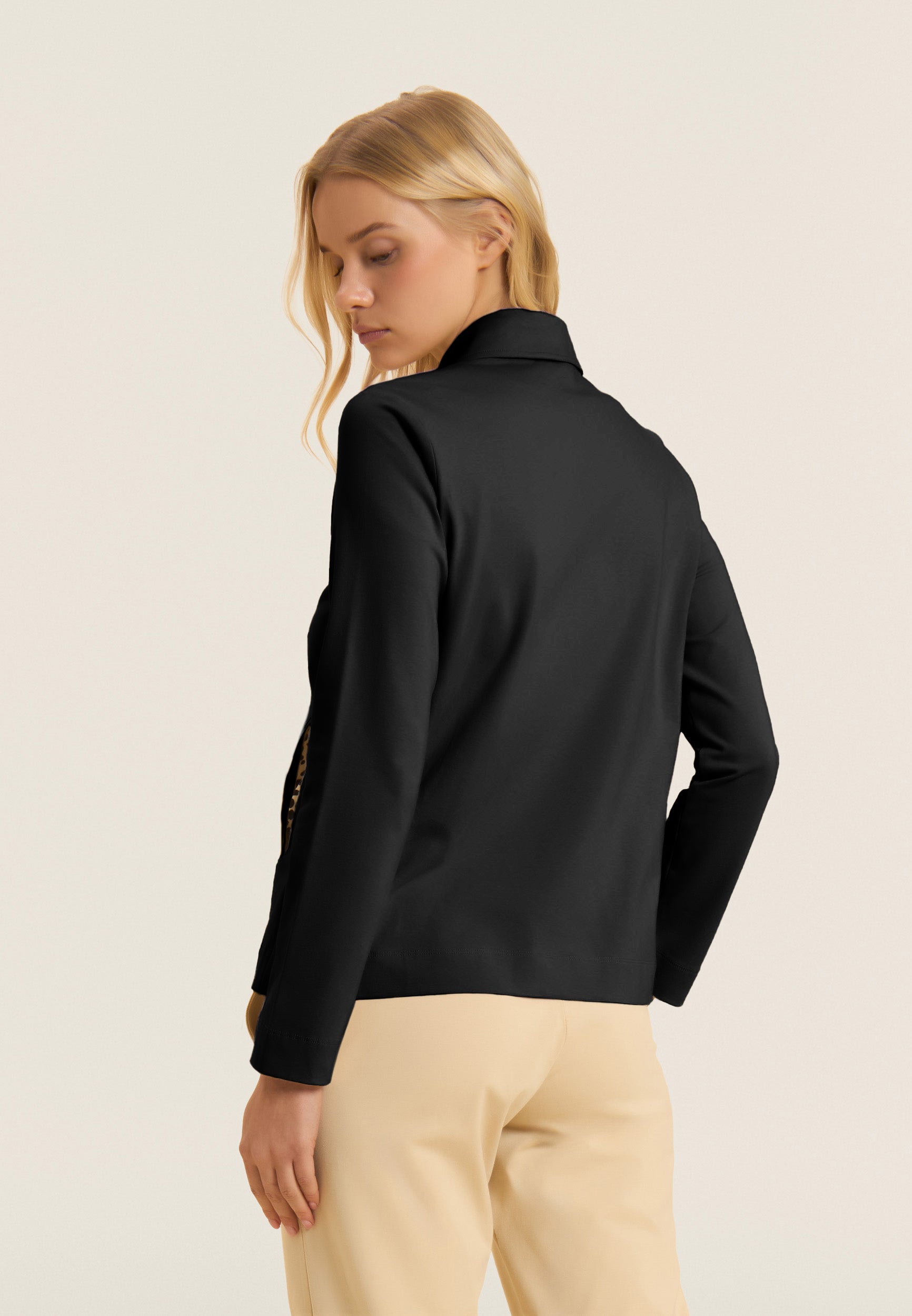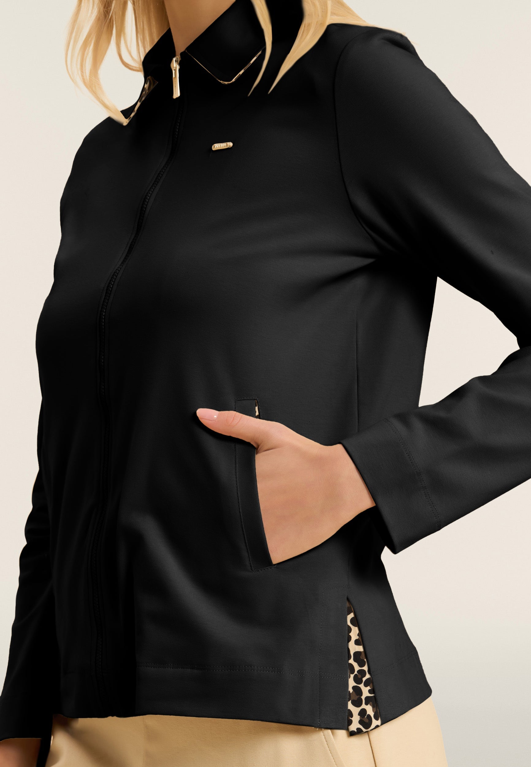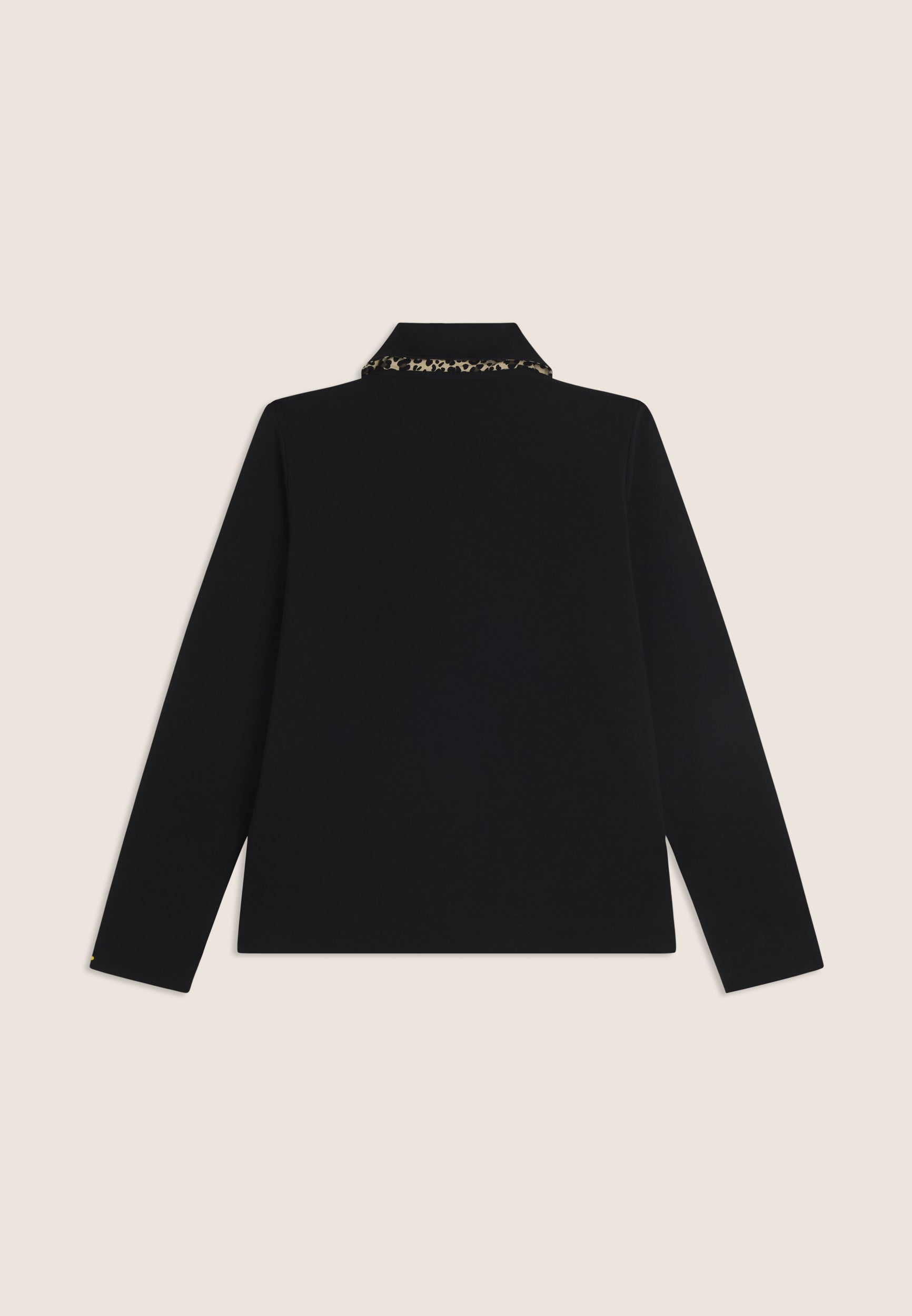 Zip sweatshirt with shirt collar and animal inserts - Black