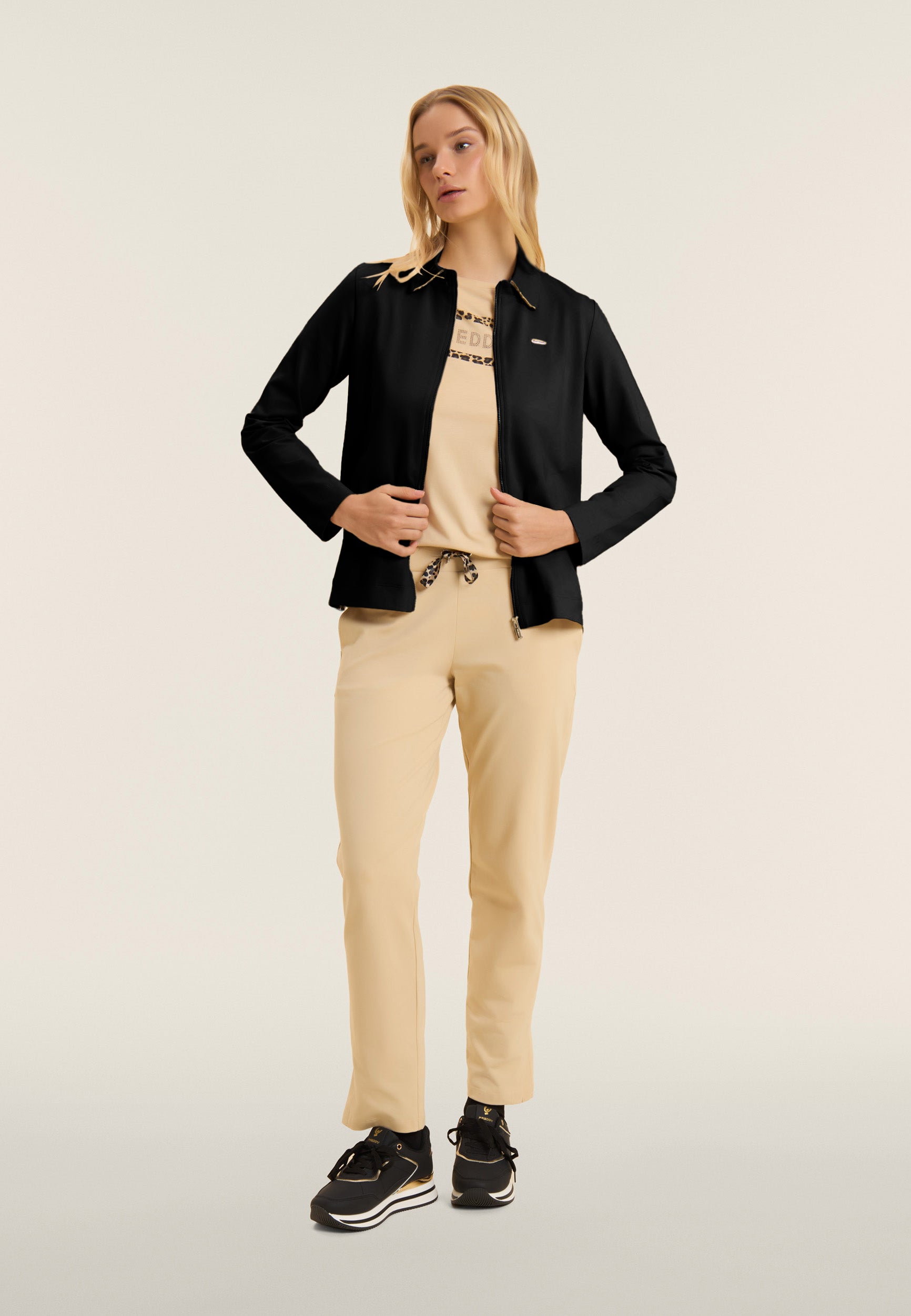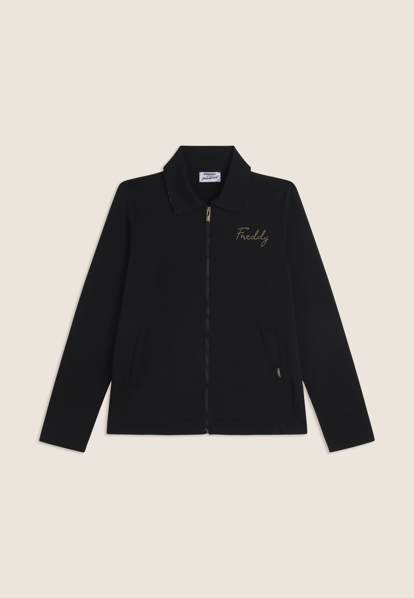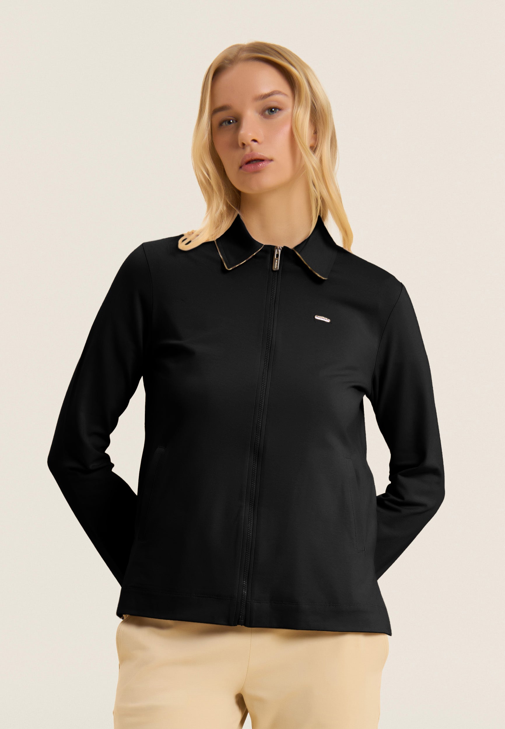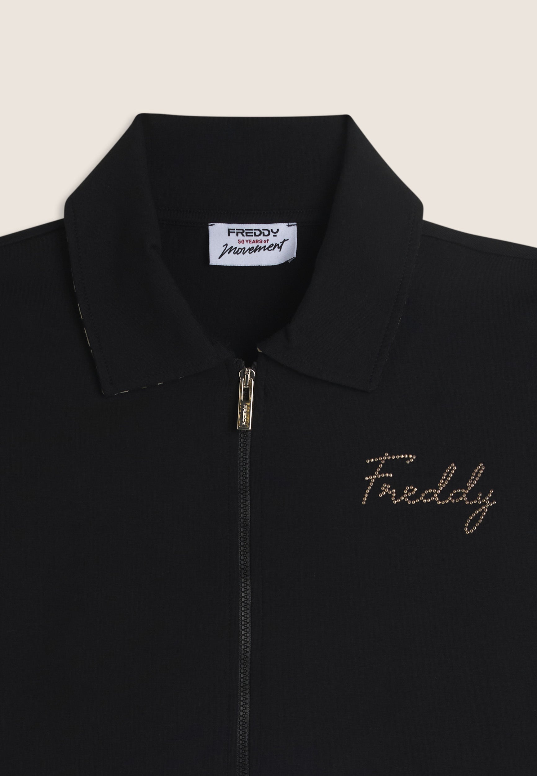 Zip sweatshirt with shirt collar and animal inserts - Black
