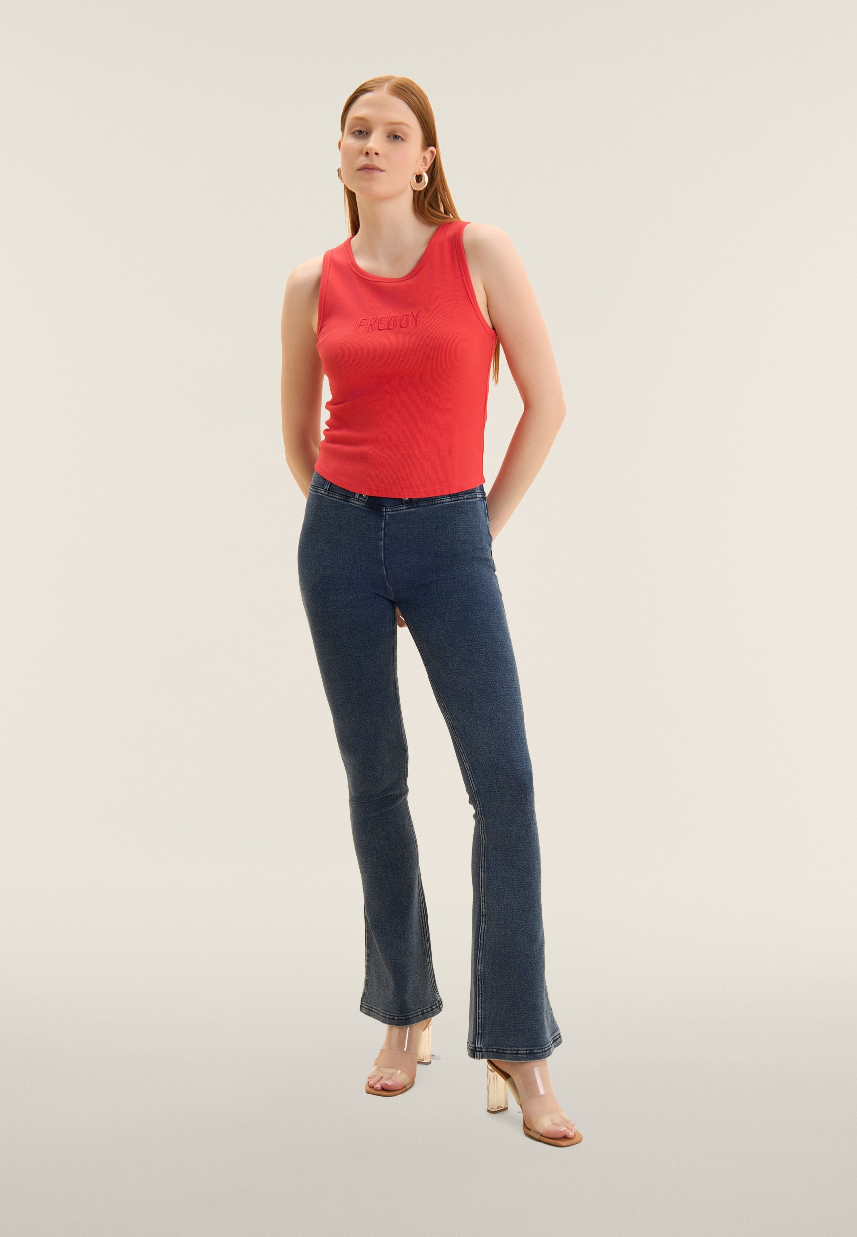 Cropped tank top with embroidered FREDDY logo - Cayenne Red