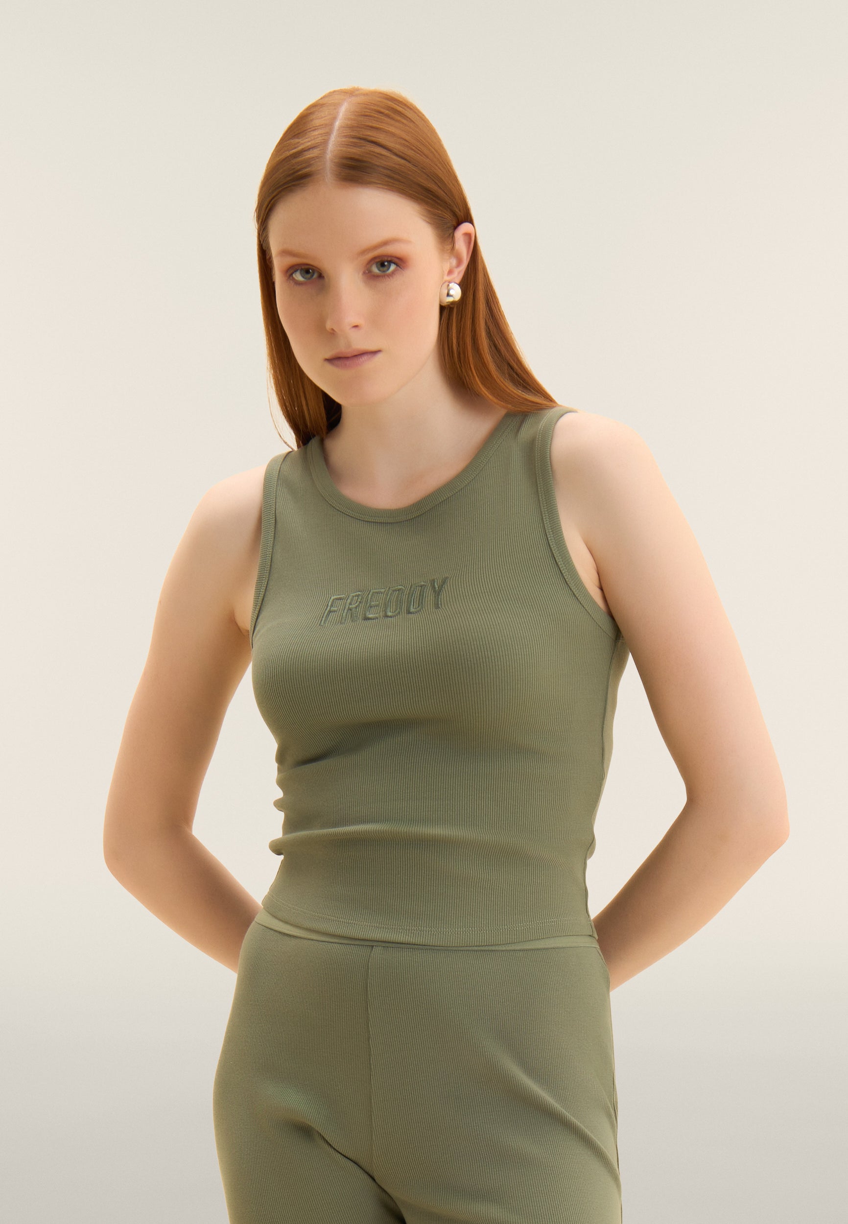 Cropped tank top with embroidered FREDDY logo - Sea Spray Green