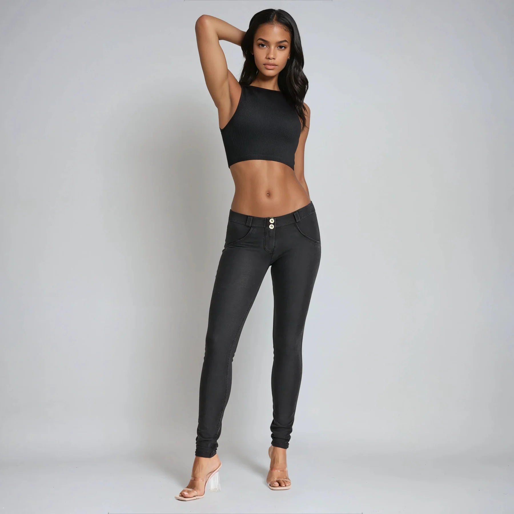 Hosen in Denim-Optik kombinieren den Stil von Jeans mit dem Komfort von Leggings. Unsere Denims sitzen wirklich wie eine zweite Haut und betonen dabei deine natürlichen Kurven. Obwohl diese Jeggings wie echte Jeans aussehen, sind sie extrem elastisch und genauso bequem wie deine Lieblingsleggings. Dank des Silikonbundes an der Taille rutscht die Hose nicht, und du brauchst keinen Gürtel. Eine Jeanshose ist eine echte Alleskönnerin, die du immer und überall tragen kannst. Wir bieten unsere Denims in zahlreichen Farben und mit unterschiedlichen Details, so dass du genau den perfekten Style für dich findest. Ob in voller Beinlänge oder Knöchellänge, mit hoher oder niedriger Leibhöhe, Freddys sitzen immer perfekt!