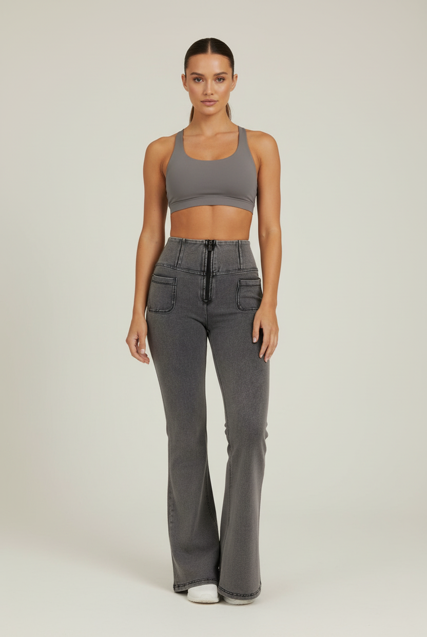 Die Mid-Waist-Modelle sitzen zwischen der Taille und dem Bauchnabel. Alle unsere mittlere Jeans haben vorne drei Freddy-typische Knöpfe. Sie sind etwas höher als unsere Regular-Waist-Hosen, aber nicht ganz so hoch, wie die High-Waist-Modelle. Sie haben einen bequemen, hohen Bund ohne Silikonstreifen, und die Knöpfe sorgen für einen perfekten Sitz. Jeans in Mid Waist eignen sich vor allem für kurvigere Frauen, die mehr Stütze und Form für den Bauch und die Taille möchten. Zusätzlich zaubern die Hosen natürlich den perfekten Po.