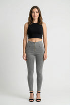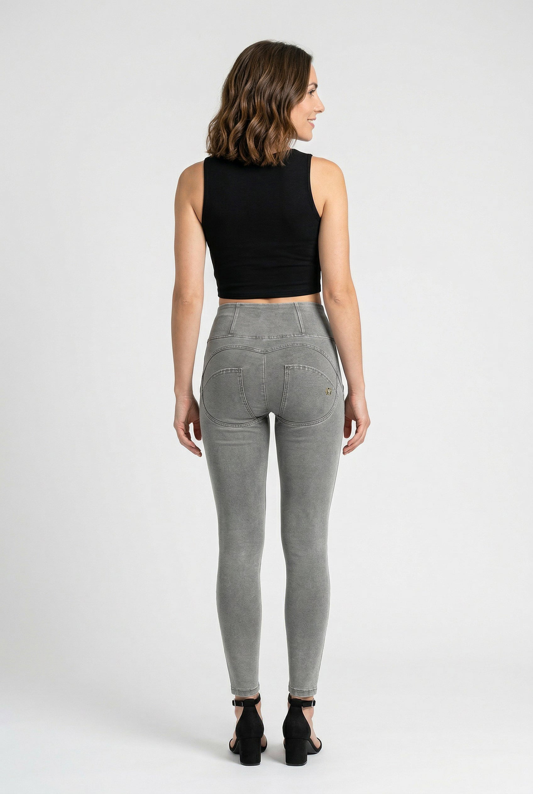 WR.UP Push-Up High Waist Skinny 7/8 Denim Jeans With Front Seam - Denim Gray - Black Seam