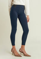 WR.UP® super skinny push-up 7/8 length trousers in heavy organic stretch cotton jersey. High waist with central zip and large side inserts in jacquard elastic, for a graphic effect that enhances the profile of the leg.
