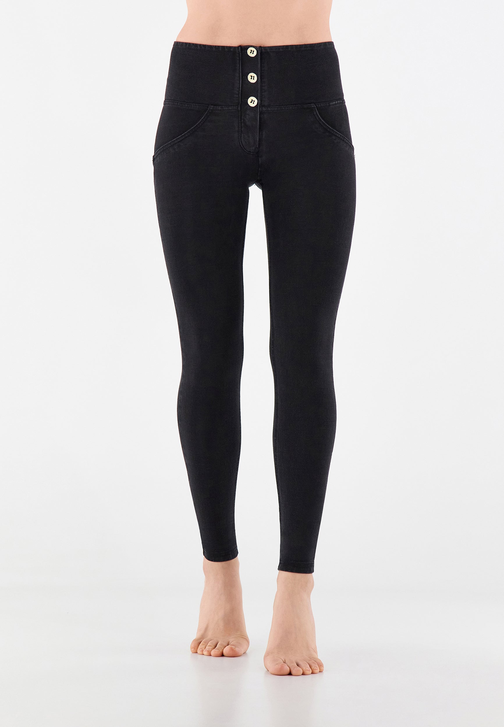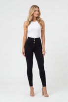 WR.UP Push-Up Button High Waist Skinny Denim Jeans - Denim Black - Black Seam